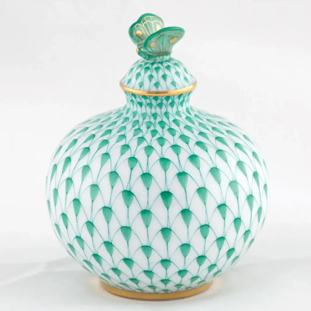 Endearing animals meek and bold, large and small, demure and majestic eagerly await the chance to melt your heart and warm your home. Each is brought to life by the skilled hands of artisans crafting and painting these charming porcelain creatures. The famous fishnet décor adorning many of the animals took form in 1858 when a Herend painter became inspired by a fishscale design he saw on a Chinese porcelain plate and painted a similar pattern onto a rooster figurine to imitate feathers. The rest is history, with the fishnet design now a Herend signature prized worldwide. Now the biggest porcelain manufactory in Europe, Herend was founded in 1826 to produce earthenware in the small Hungarian village for which it was named. At the time, Hungary was flooded with low-cost pottery, but in 1839, Mor Fischer became the Manufactory’s new owner and he decided to focus on producing dinnerware replacement pieces for Europe’s royal families to complement their valuable porcelain patterns from Germany and the Far East. As his client base grew, Fischer commissioned his artists to begin designing dinnerware patterns of their own. Queen Victoria’s 1851 purchase of a large set for Windsor Castle was a milestone, setting the stage for aristocrats throughout Europe to clamor for Herend in their estates. In the 1850s, Herend added meticulously-crafted figurines to its creations. Herend’s trademark fishnet pattern, which is widely recognized and prized as Herend’s signature design, started in 1858 when an artist who was intrigued with a Chinese plate’s fish scale design painted it onto a rooster figurine to imitate feathers.