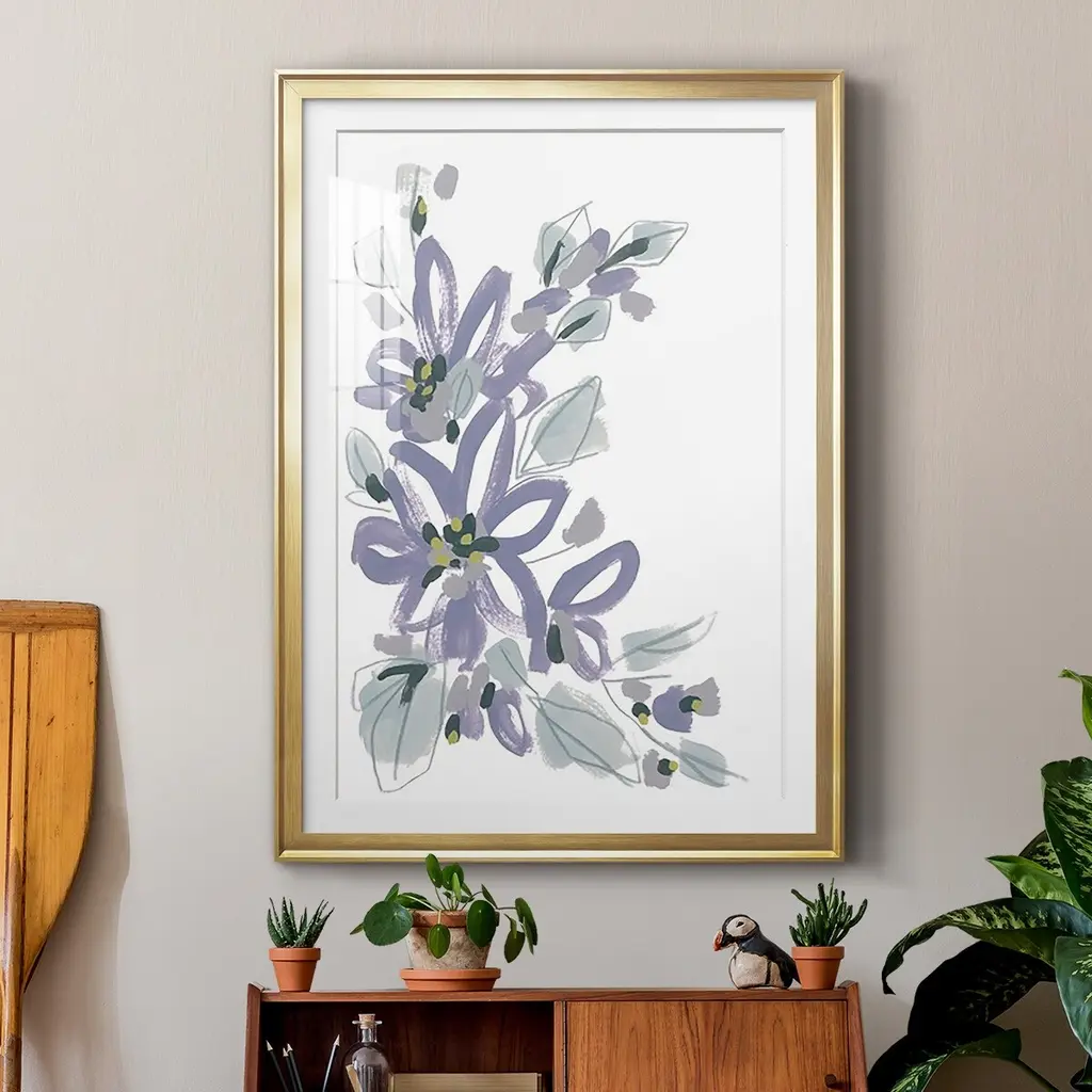 Periwinkle Patch I Premium Framed Print - Ready to Hang A Premium Framed Print created to last. Framed in distressed wood and available in an array of sizes and colors Featuring a beveled a solid wood stretcher bar, each piece comes ready to hand 4 SIZES AVAILABLE 30.5''X42.5'' - Overall Size 26.5'X36.5'' - Overall Size 22.5''x30.5'' - Overall Size 18.5''x24.5'' - Overall Size Each piece is made to order. Each piece comes with hanging hardware. Made in the USA Ready to Hang Giclee Paper Print Acrylic Glass Beveled Matt Board