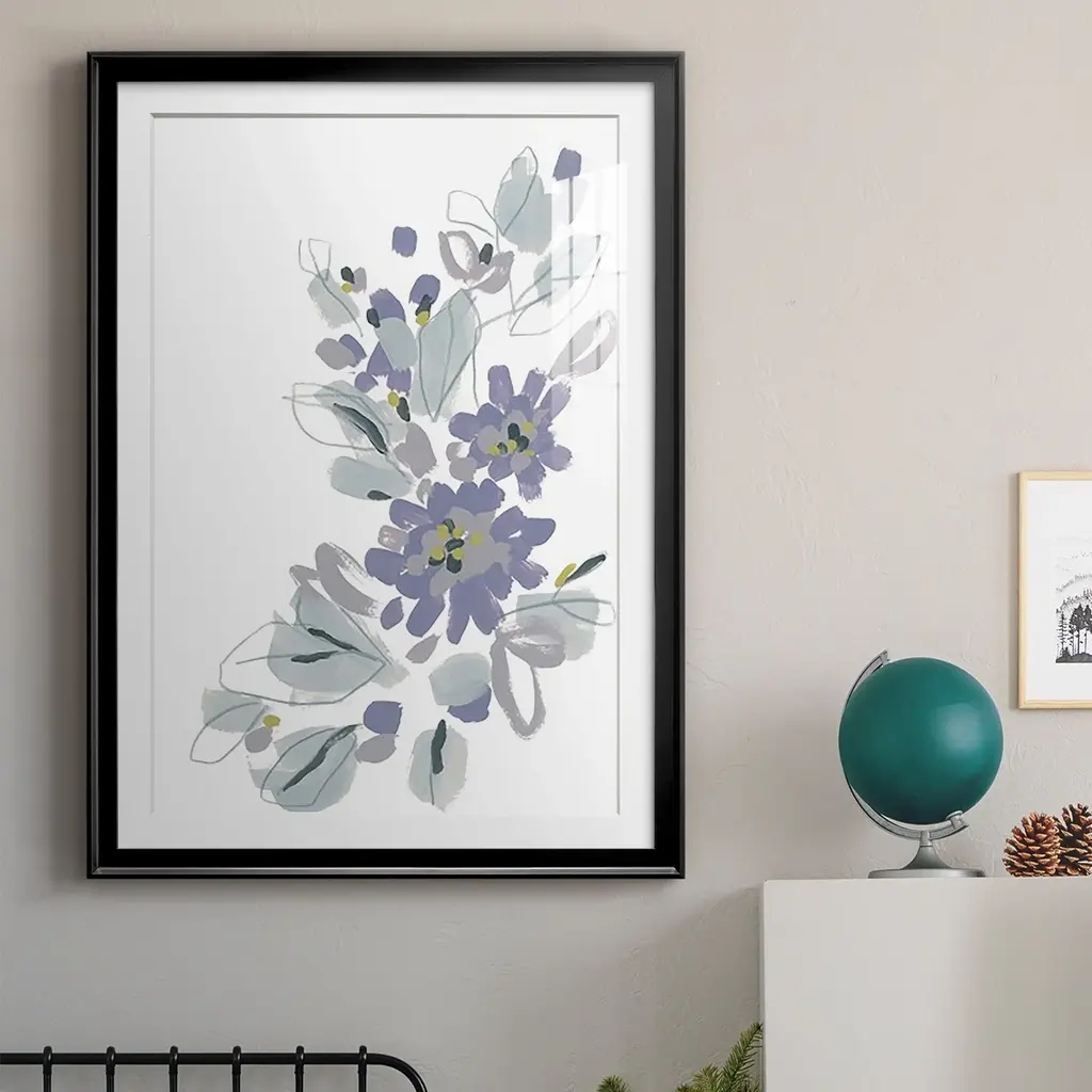 Periwinkle Patch II Premium Framed Print - Ready to Hang A Premium Framed Print created to last. Framed in distressed wood and available in an array of sizes and colors Featuring a beveled a solid wood stretcher bar, each piece comes ready to hand 4 SIZES AVAILABLE 30.5''X42.5'' - Overall Size 26.5'X36.5'' - Overall Size 22.5''x30.5'' - Overall Size 18.5''x24.5'' - Overall Size Each piece is made to order. Each piece comes with hanging hardware. Made in the USA Ready to Hang Giclee Paper Print Acrylic Glass Beveled Matt Board