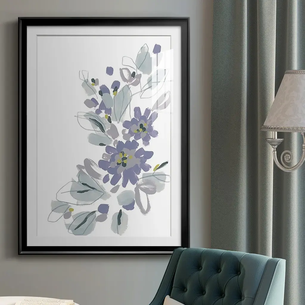 Periwinkle Patch II Premium Framed Print - Ready to Hang A Premium Framed Print created to last. Framed in distressed wood and available in an array of sizes and colors Featuring a beveled a solid wood stretcher bar, each piece comes ready to hand 4 SIZES AVAILABLE 30.5''X42.5'' - Overall Size 26.5'X36.5'' - Overall Size 22.5''x30.5'' - Overall Size 18.5''x24.5'' - Overall Size Each piece is made to order. Each piece comes with hanging hardware. Made in the USA Ready to Hang Giclee Paper Print Acrylic Glass Beveled Matt Board