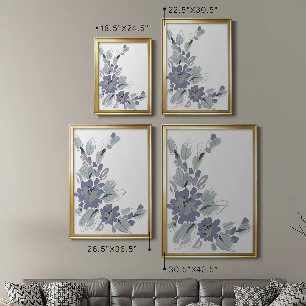 Periwinkle Patch III Premium Framed Print - Ready to Hang A Premium Framed Print created to last. Framed in distressed wood and available in an array of sizes and colors Featuring a beveled a solid wood stretcher bar, each piece comes ready to hand 4 SIZES AVAILABLE 30.5''X42.5'' - Overall Size 26.5'X36.5'' - Overall Size 22.5''x30.5'' - Overall Size 18.5''x24.5'' - Overall Size Each piece is made to order. Each piece comes with hanging hardware. Made in the USA Ready to Hang