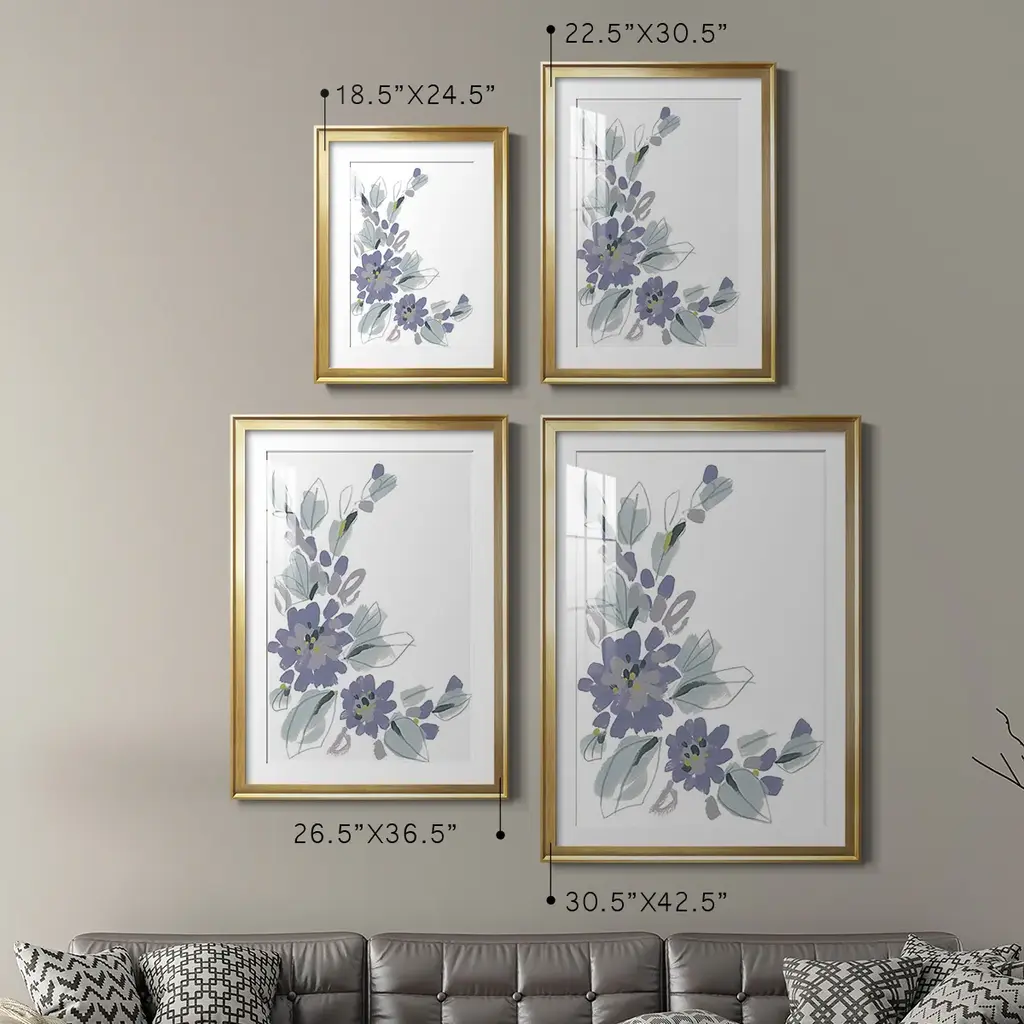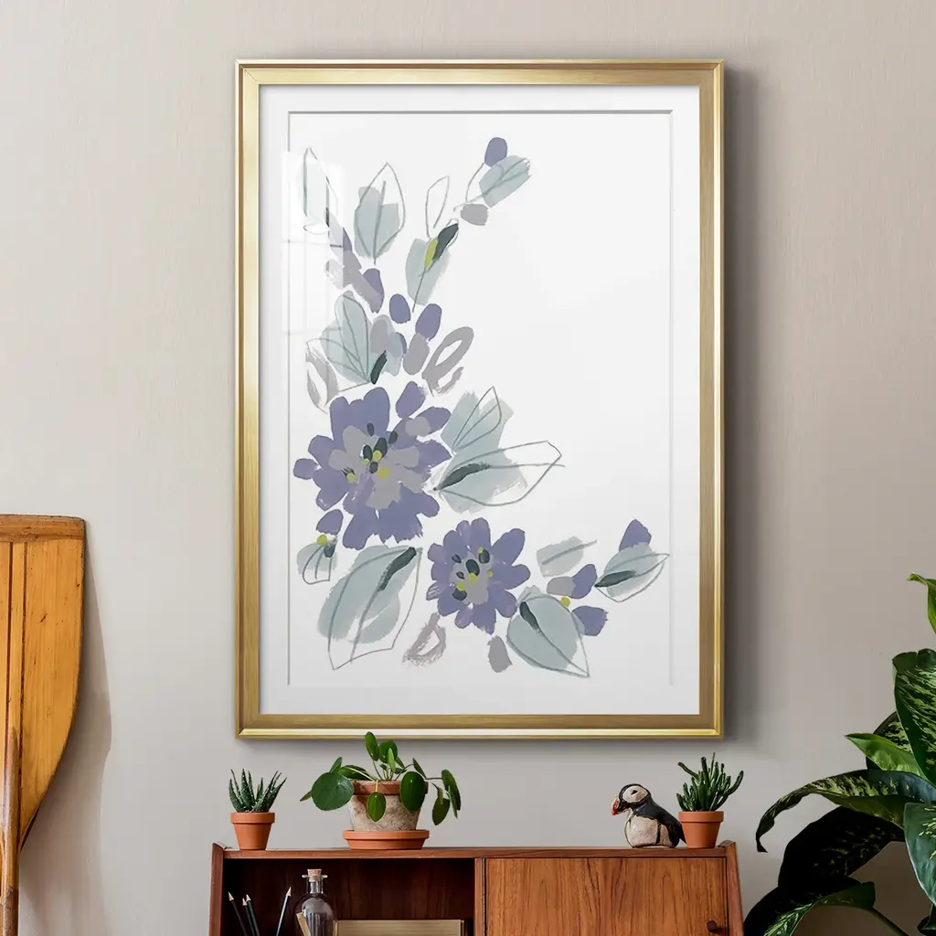 Periwinkle Patch III Premium Framed Print - Ready to Hang A Premium Framed Print created to last. Framed in distressed wood and available in an array of sizes and colors Featuring a beveled a solid wood stretcher bar, each piece comes ready to hand 4 SIZES AVAILABLE 30.5''X42.5'' - Overall Size 26.5'X36.5'' - Overall Size 22.5''x30.5'' - Overall Size 18.5''x24.5'' - Overall Size Each piece is made to order. Each piece comes with hanging hardware. Made in the USA Ready to Hang Giclee Paper Print Acrylic Glass Beveled Matt Board