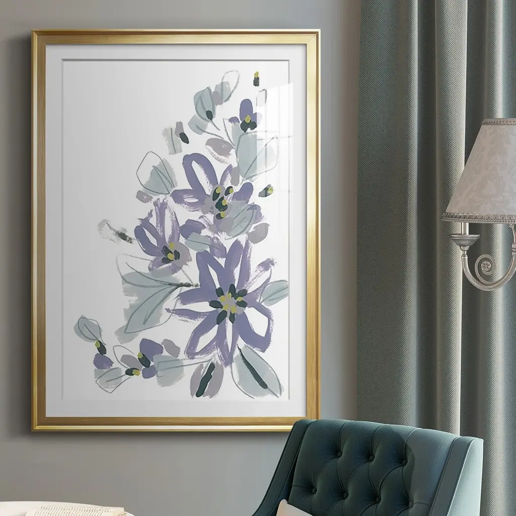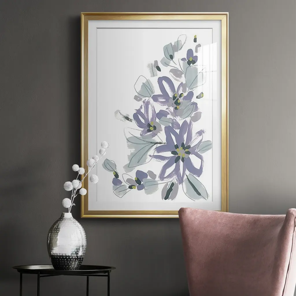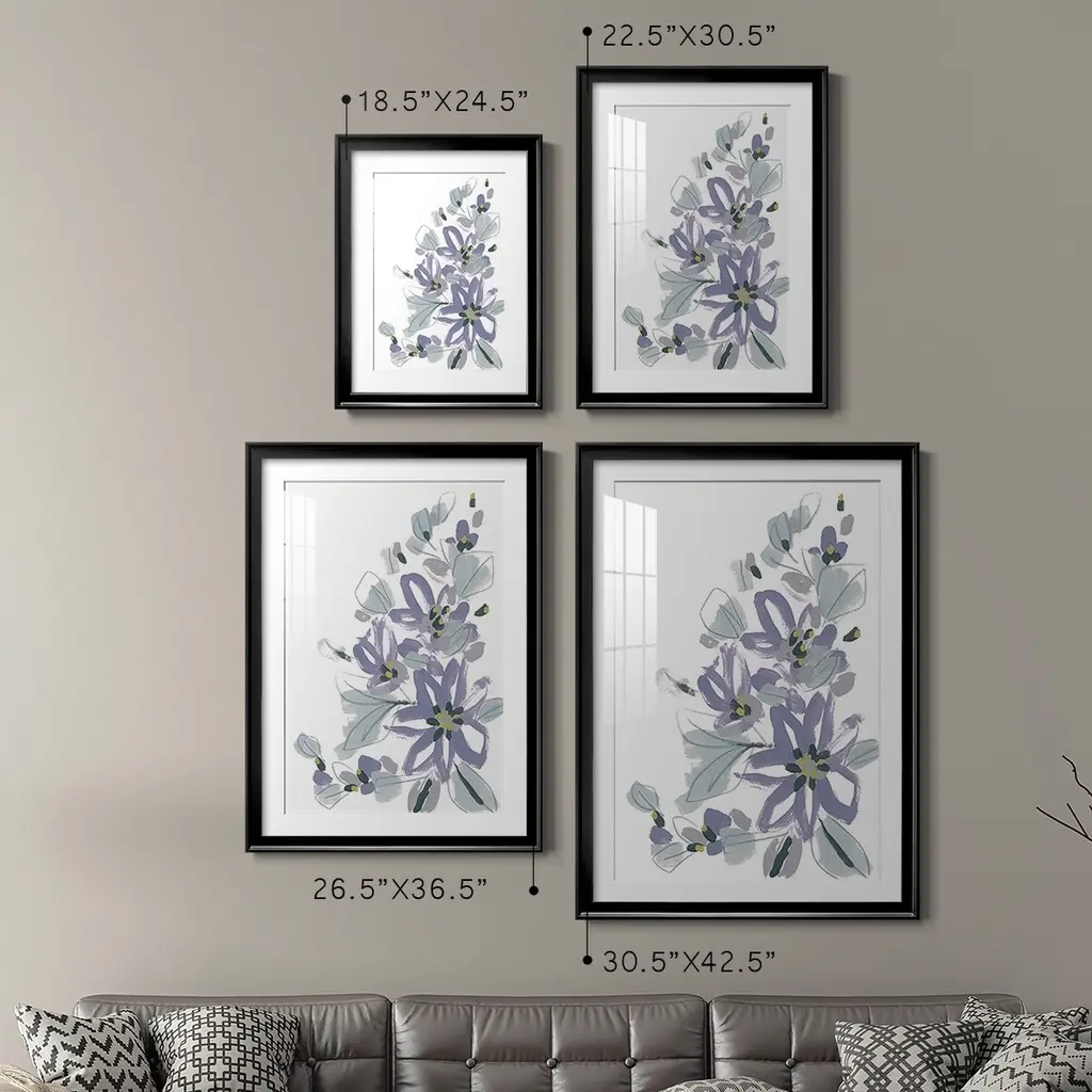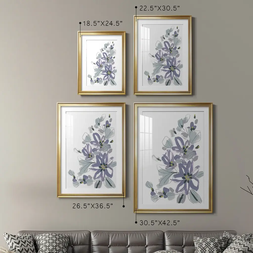 Periwinkle Patch IV Premium Framed Print - Ready to Hang A Premium Framed Print created to last. Framed in distressed wood and available in an array of sizes and colors Featuring a beveled a solid wood stretcher bar, each piece comes ready to hand 4 SIZES AVAILABLE 30.5''X42.5'' - Overall Size 26.5'X36.5'' - Overall Size 22.5''x30.5'' - Overall Size 18.5''x24.5'' - Overall Size Each piece is made to order. Each piece comes with hanging hardware. Made in the USA Ready to Hang Giclee Paper Print Acrylic Glass Beveled Matt Board
