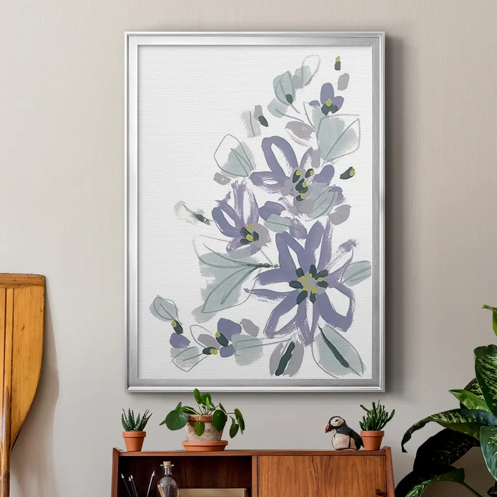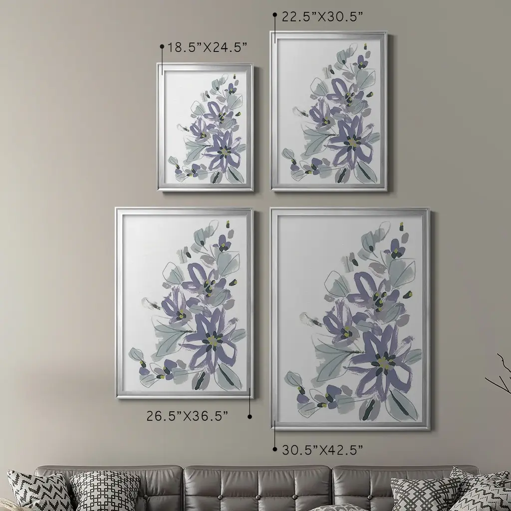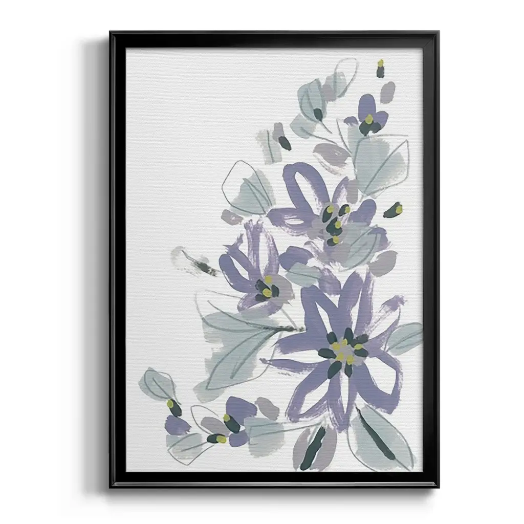 Periwinkle Patch IV Premium Framed Print - Ready to Hang A Premium Framed Print created to last. Framed in distressed wood and available in an array of sizes and colors Featuring a beveled a solid wood stretcher bar, each piece comes ready to hand 4 SIZES AVAILABLE 30.5''X42.5'' - Overall Size 26.5'X36.5'' - Overall Size 22.5''x30.5'' - Overall Size 18.5''x24.5'' - Overall Size Each piece is made to order. Each piece comes with hanging hardware. Made in the USA Ready to Hang