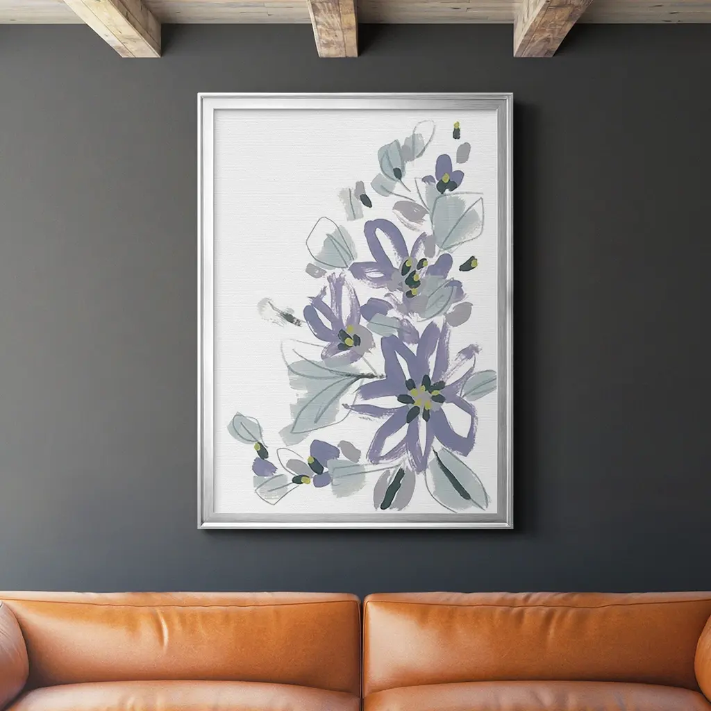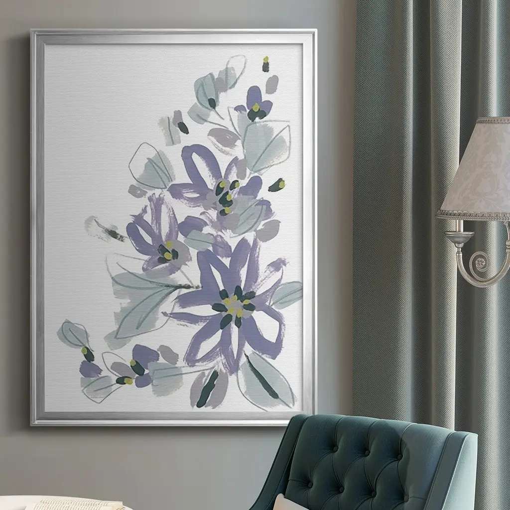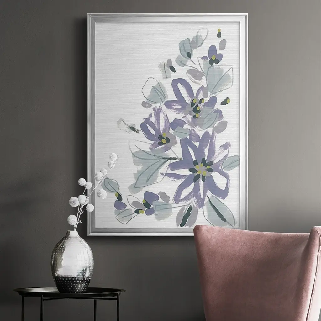 Periwinkle Patch IV Premium Framed Print - Ready to Hang A Premium Framed Print created to last. Framed in distressed wood and available in an array of sizes and colors Featuring a beveled a solid wood stretcher bar, each piece comes ready to hand 4 SIZES AVAILABLE 30.5''X42.5'' - Overall Size 26.5'X36.5'' - Overall Size 22.5''x30.5'' - Overall Size 18.5''x24.5'' - Overall Size Each piece is made to order. Each piece comes with hanging hardware. Made in the USA Ready to Hang