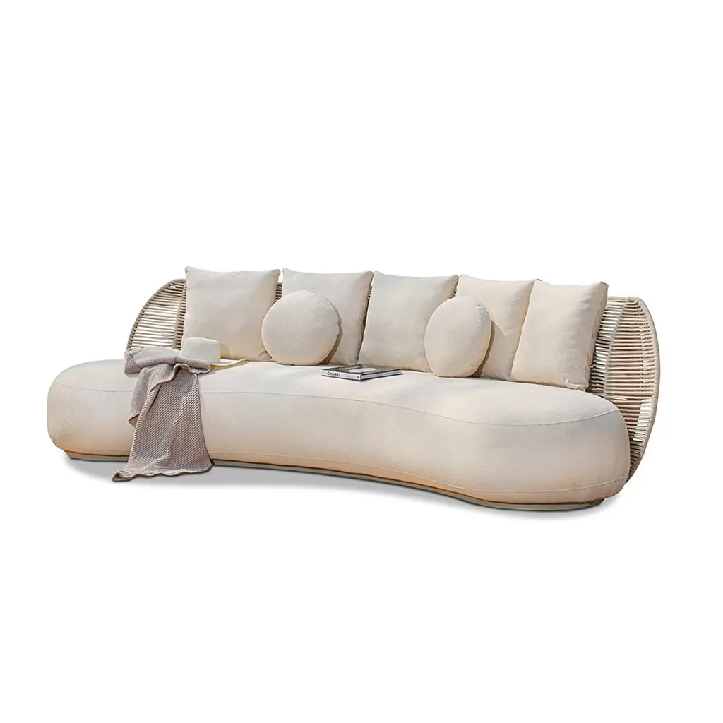 "Perlage" Organic Sofa Outdoor In Bouclé Aluminum And Hand Braided Nautical Rope