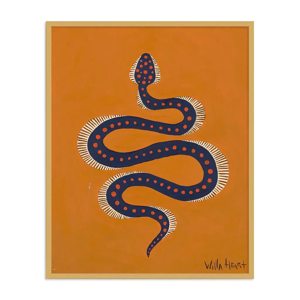 Persimmon The Snake By Willa Heart In Gold Frame, Small Art Print