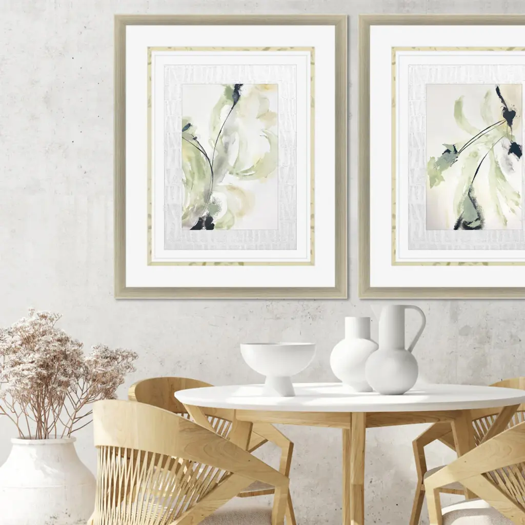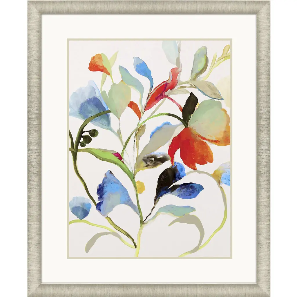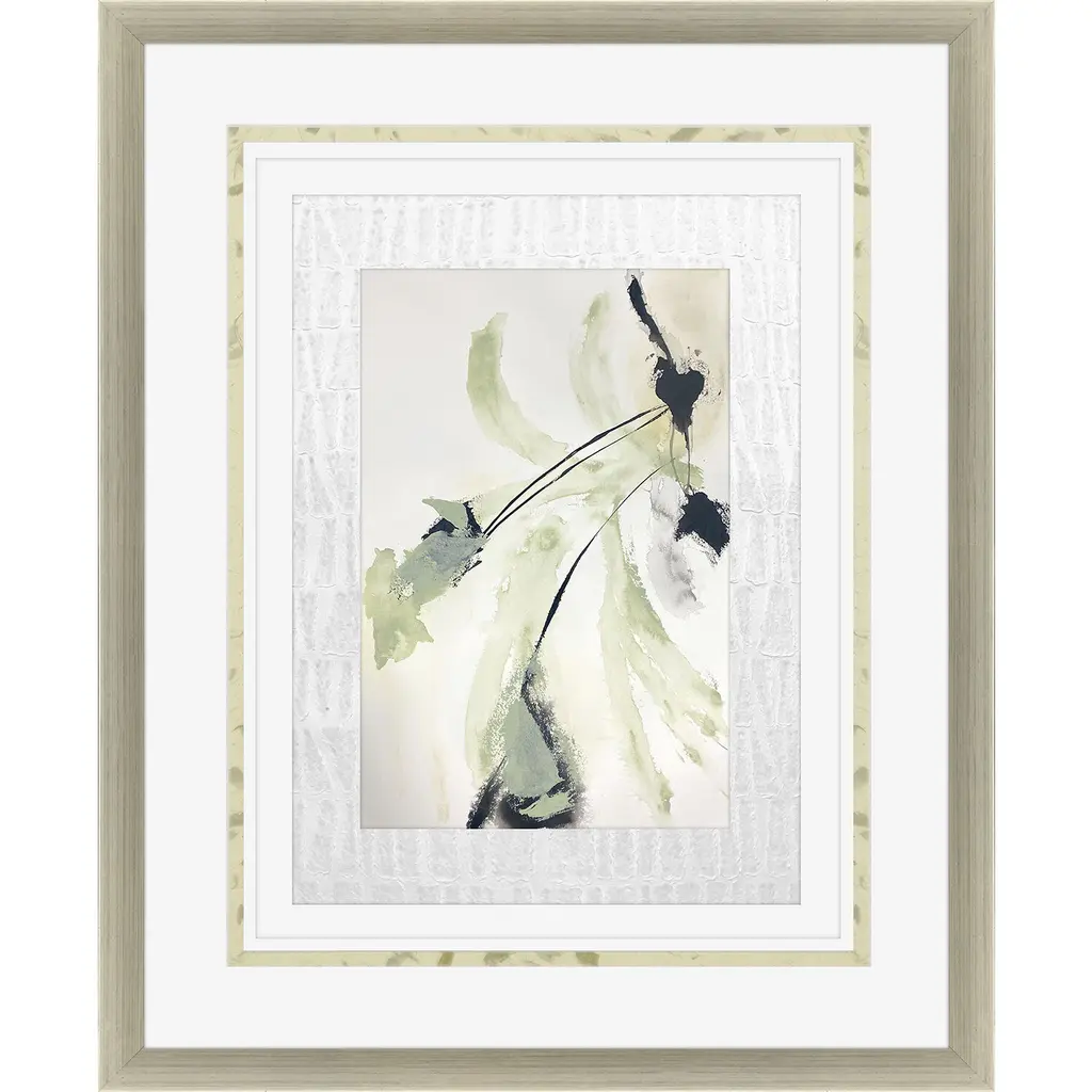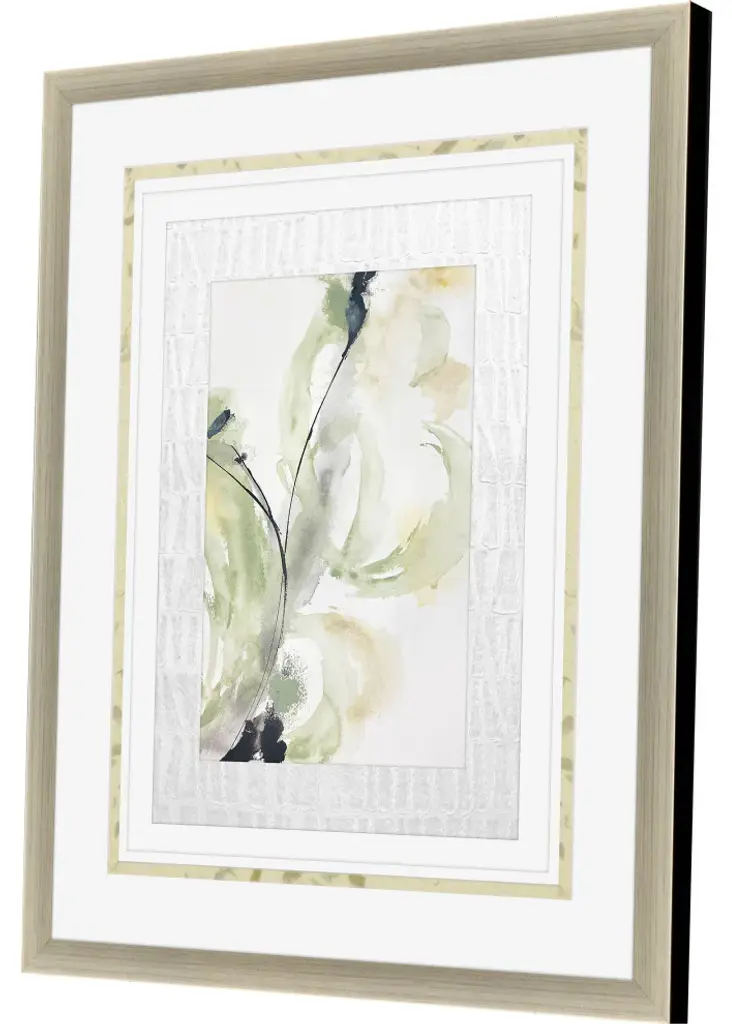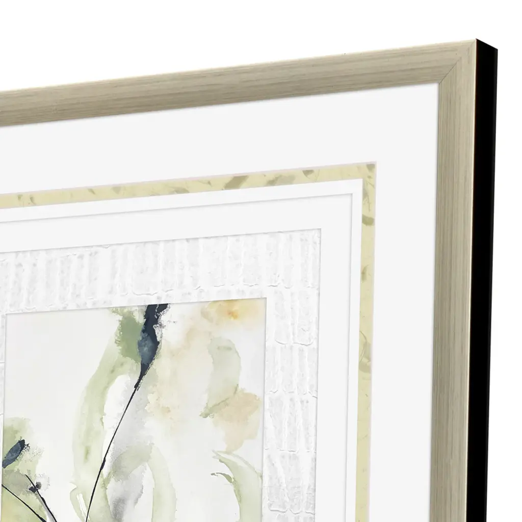 Exclusive hand painted on fine art paper. Framed in a modern antique silver leaf wood with champagne wash and painted black edge.