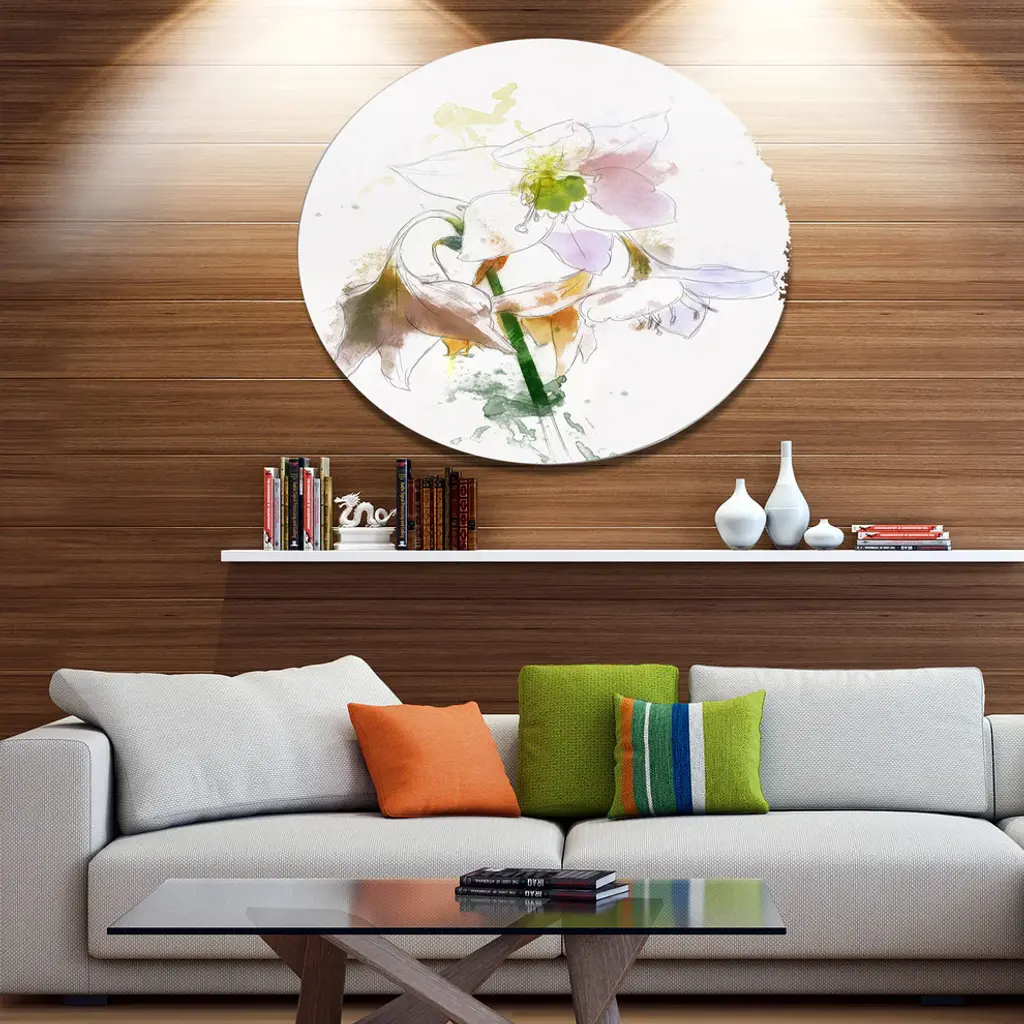 Petal Watercolor Flower Sketch, Floral Large Disc Metal Wall Art, 23"