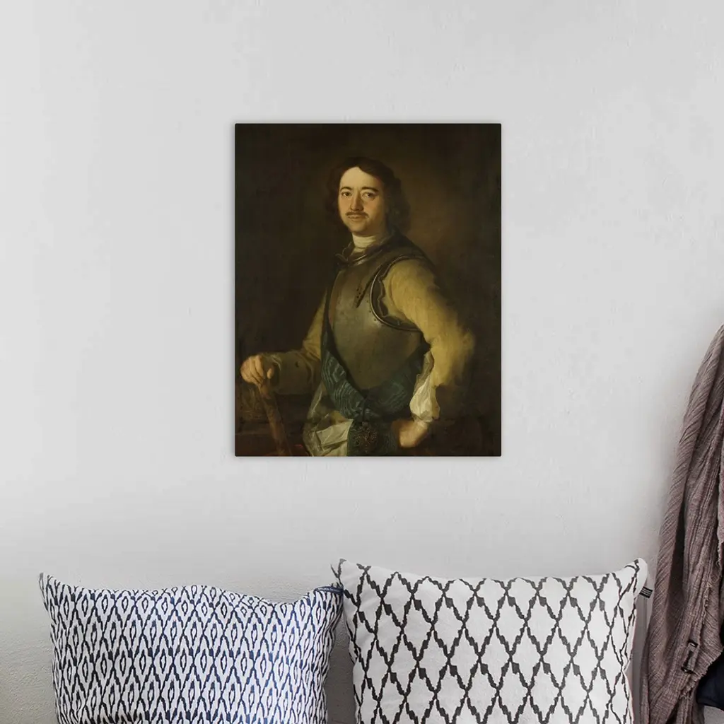 Peter the Great, Tsar of Russia, by Anonymous artist, 1700-25, European painting, oil on canvas. 1697 he traveled incognito on this 'Grand Embassy' to Western Europe. In the Netherlands, he studied shipbuilding in Zaandam and Amsterdam. This portrait was