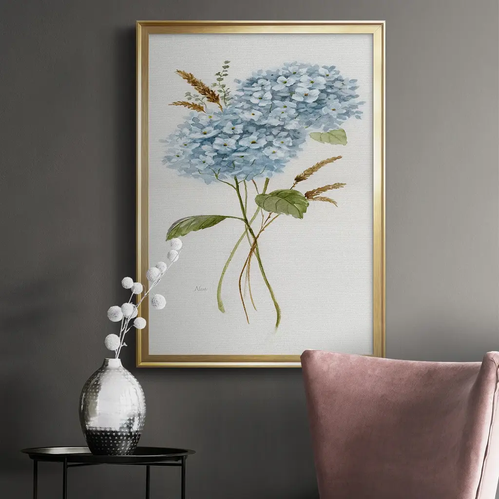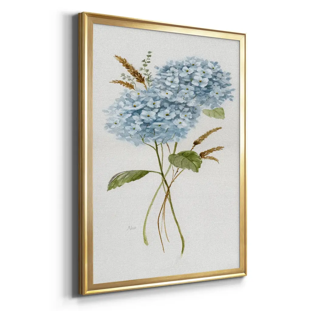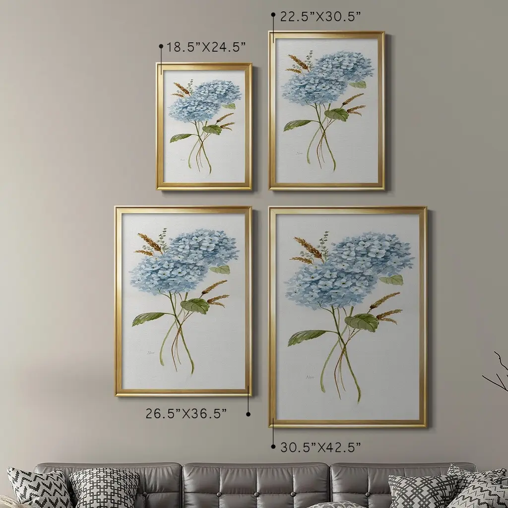 Petite Blue Hydrangea I Premium Framed Print - Ready to Hang A Premium Framed Print created to last. Framed in distressed wood and available in an array of sizes and colors Featuring a beveled a solid wood stretcher bar, each piece comes ready to hand 4 SIZES AVAILABLE 30.5''X42.5'' - Overall Size 26.5'X36.5'' - Overall Size 22.5''x30.5'' - Overall Size 18.5''x24.5'' - Overall Size Each piece is made to order. Each piece comes with hanging hardware. Made in the USA Ready to Hang