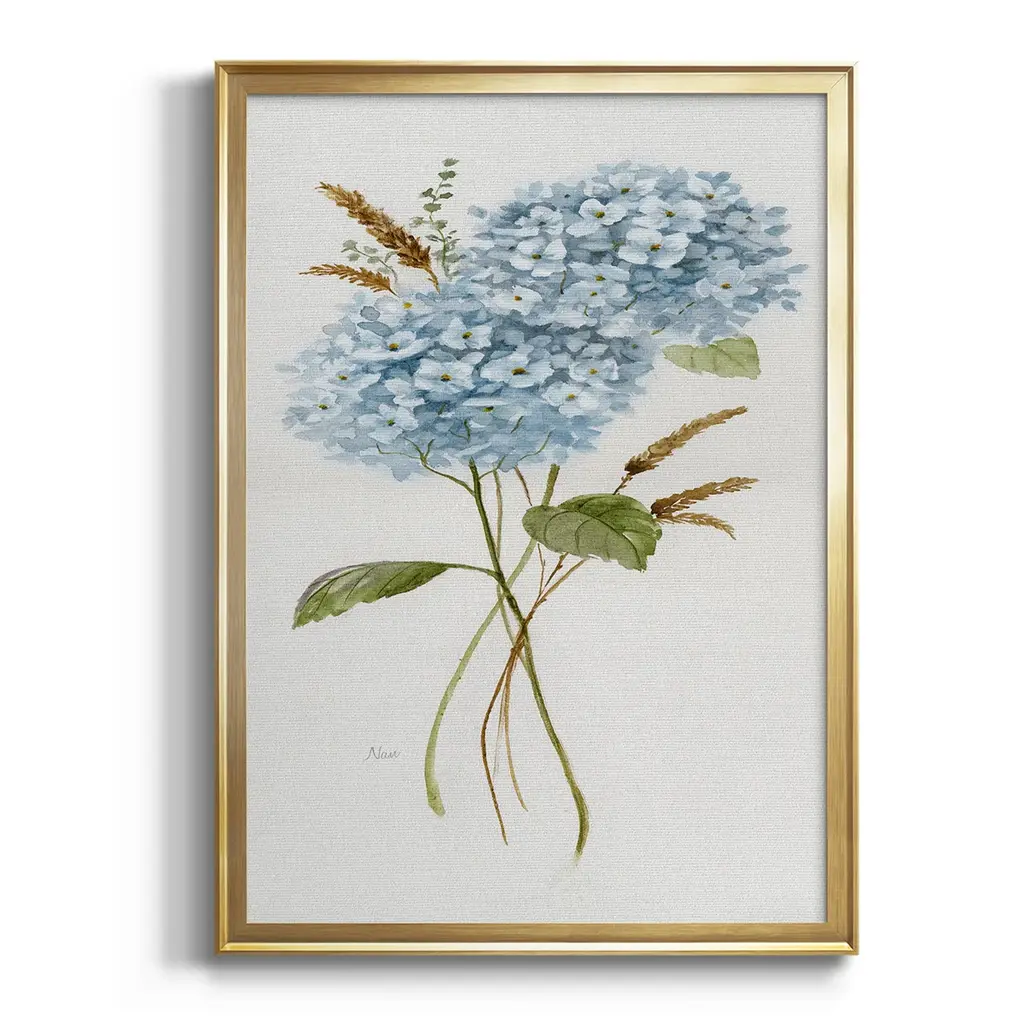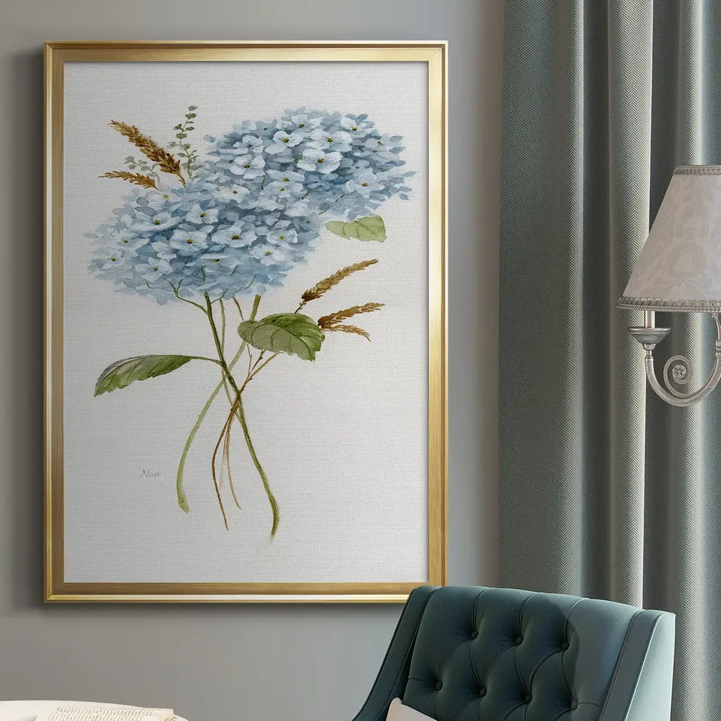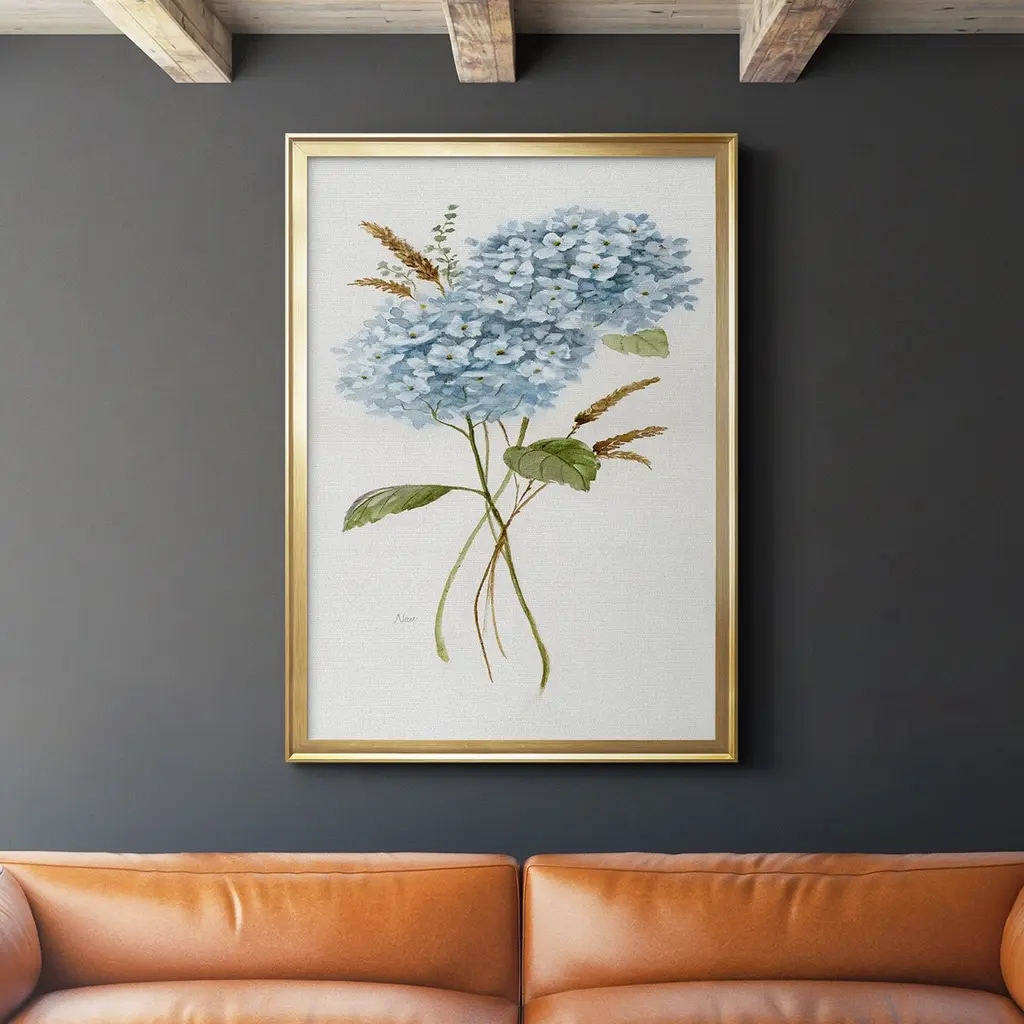 Petite Blue Hydrangea I Premium Framed Print - Ready to Hang A Premium Framed Print created to last. Framed in distressed wood and available in an array of sizes and colors Featuring a beveled a solid wood stretcher bar, each piece comes ready to hand 4 SIZES AVAILABLE 30.5''X42.5'' - Overall Size 26.5'X36.5'' - Overall Size 22.5''x30.5'' - Overall Size 18.5''x24.5'' - Overall Size Each piece is made to order. Each piece comes with hanging hardware. Made in the USA Ready to Hang