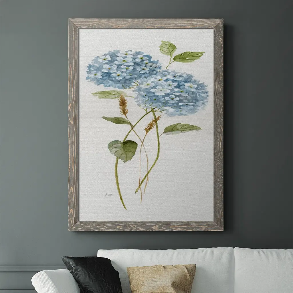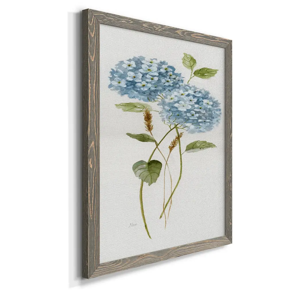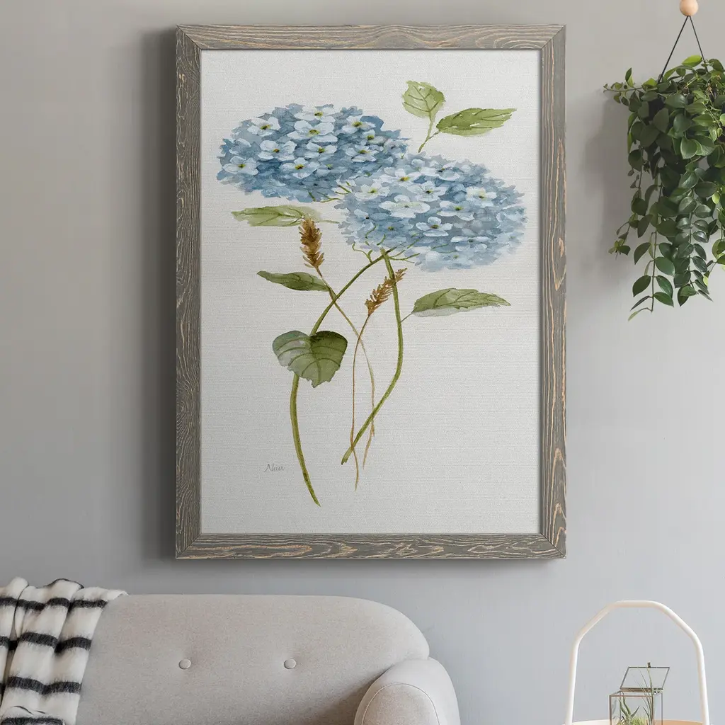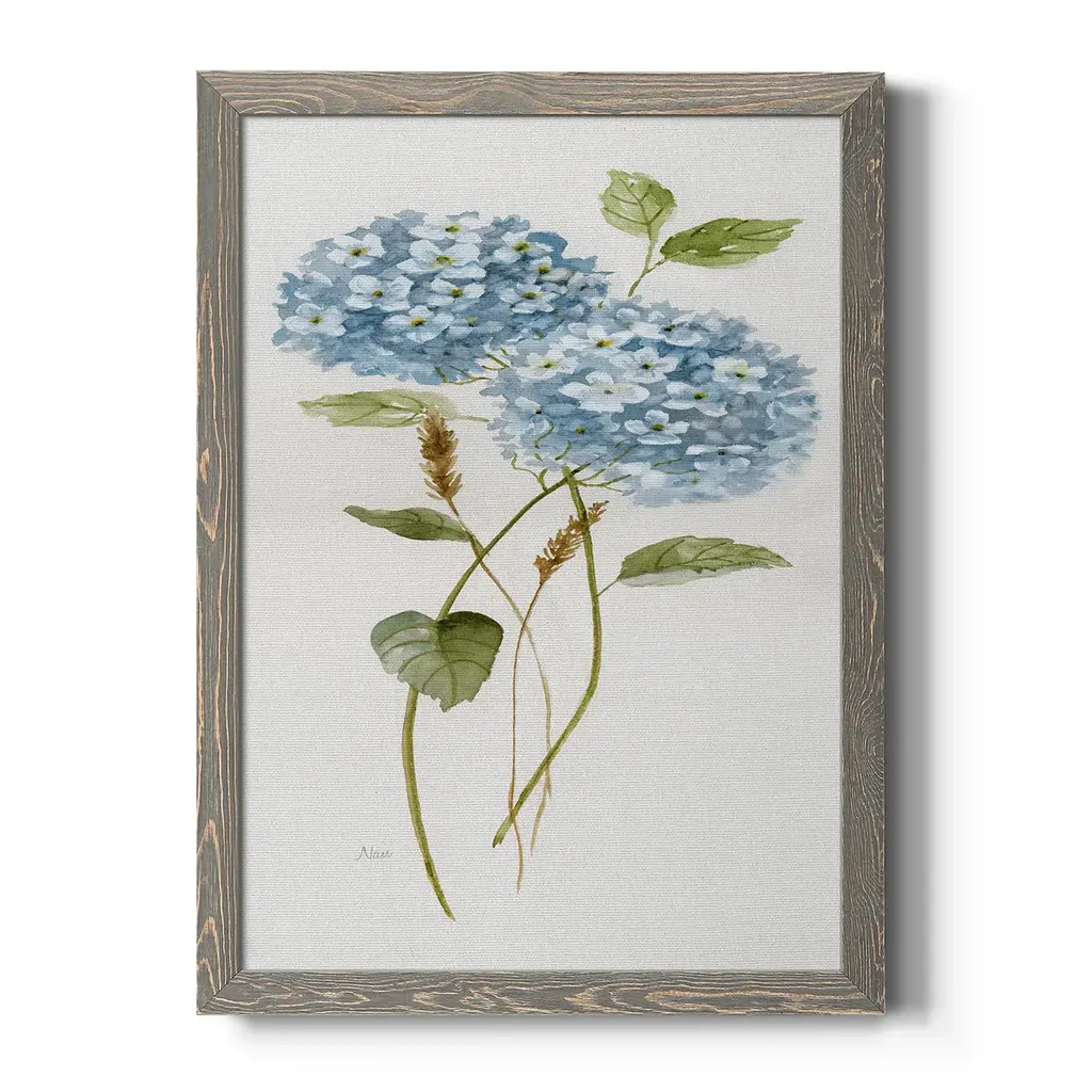 Petite Blue Hydrangea Ii-Premium Framed Canvas - Ready To Hang - 31.5x43.5 - Walnut