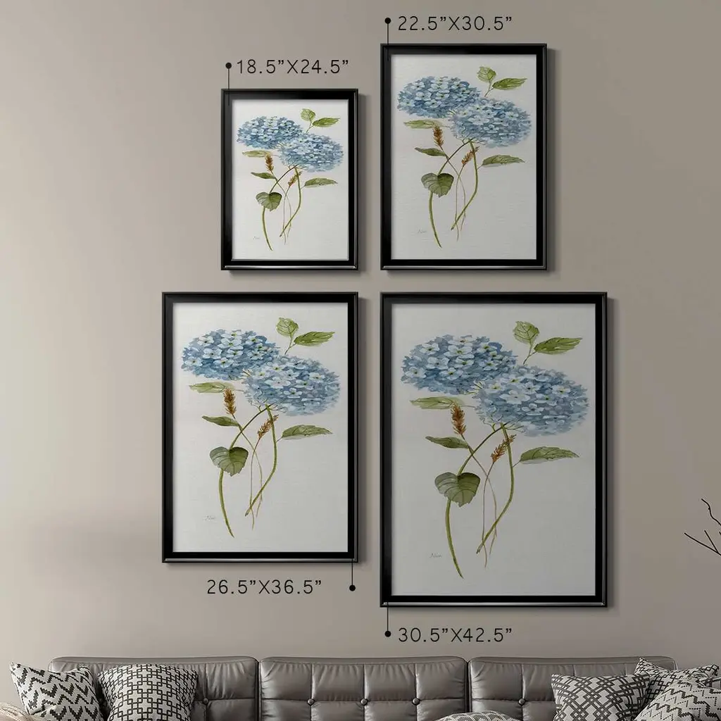 Petite Blue Hydrangea II Premium Framed Print - Ready to Hang A Premium Framed Print created to last. Framed in distressed wood and available in an array of sizes and colors Featuring a beveled a solid wood stretcher bar, each piece comes ready to hand 4 SIZES AVAILABLE 30.5''X42.5'' - Overall Size 26.5'X36.5'' - Overall Size 22.5''x30.5'' - Overall Size 18.5''x24.5'' - Overall Size Each piece is made to order. Each piece comes with hanging hardware. Made in the USA Ready to Hang