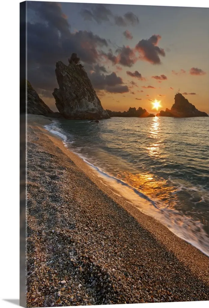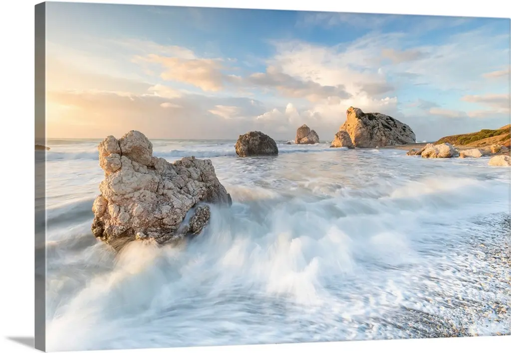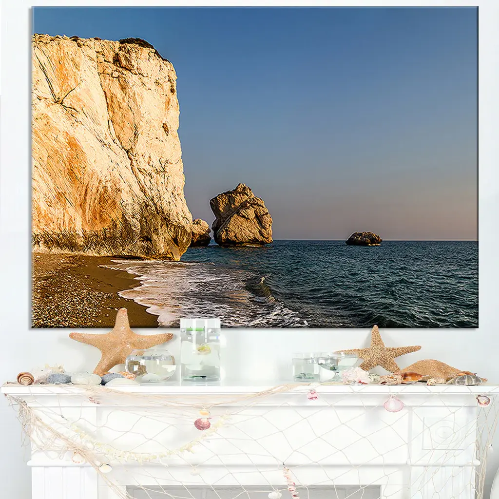 The Petra tou Romiou or Aphrodite''s Rock canvas art print is sure to make an impression on anyone who sees it. This artwork is gallery wrapped around a 1-inch solid wood frame and arrives carefully packaged and entirely ready to hang on the wall. Design Art only uses the highest resolution and pigments to ensure a crisp colorful print that is never faded or pixelated. This artwork is sure to be a conversation starter in any home or office.