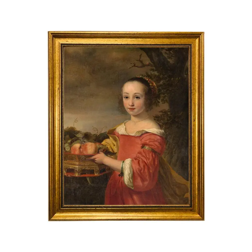 "Petronella Elias With A Basket Of Fruit" Contemporary Reproduction Print On Canvas After Ferdinand Bol, Framed