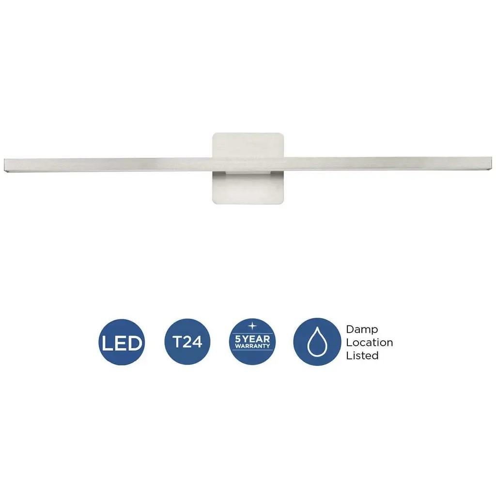 Elevate your space with the 32-inch Phase 5 Linear Vanity Light, a sophisticated lighting solution that seamlessly blends form and function. Crafted precisely from high-quality aluminum coated in subtle brushed nickel, this fixture is designed to impress. The integrated acrylic lens adds a refined touch, diffusing light softly and evenly for a truly inviting ambiance. Customize your lighting experience with the selectable CCT (Correlated Color Temperature) feature, offering a range of 3000K for warm and cozy lighting, 4000K for a neutral and vibrant atmosphere, or 5000K for crisp, daylight-inspired illumination. With a high Color Rendering Index (CRI) of 90, the fixture ensures that colors remain accurate and vibrant under its light. This wall-mounted linear vanity light is ideal for gracing your bathroom or dressing area with functional, stylish lighting. It is CA/T24 JA8 compliant, meeting the stringent energy efficiency and performance standards.