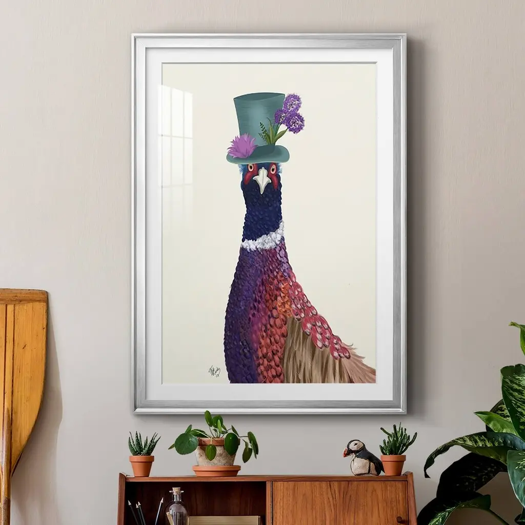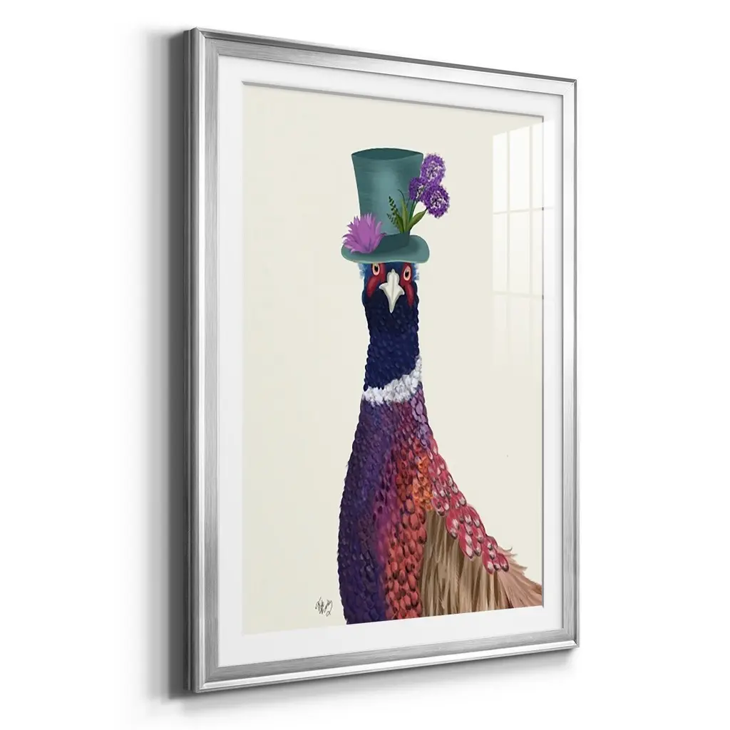 Pheasant In Blue Hat Premium Framed Print - Ready To Hang - 26.5x36.5 - Black
