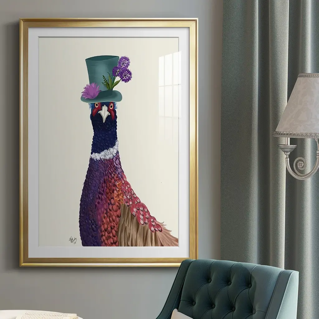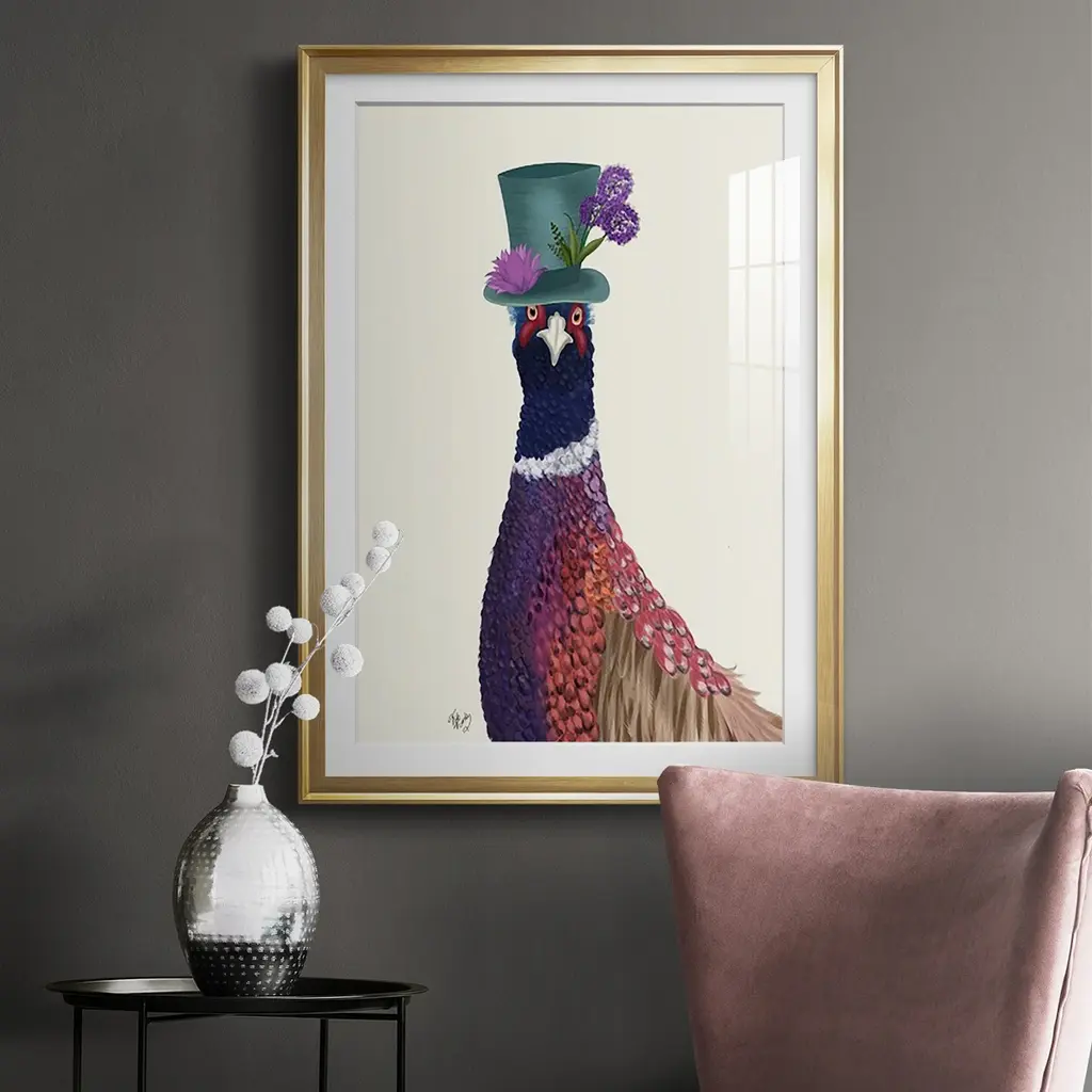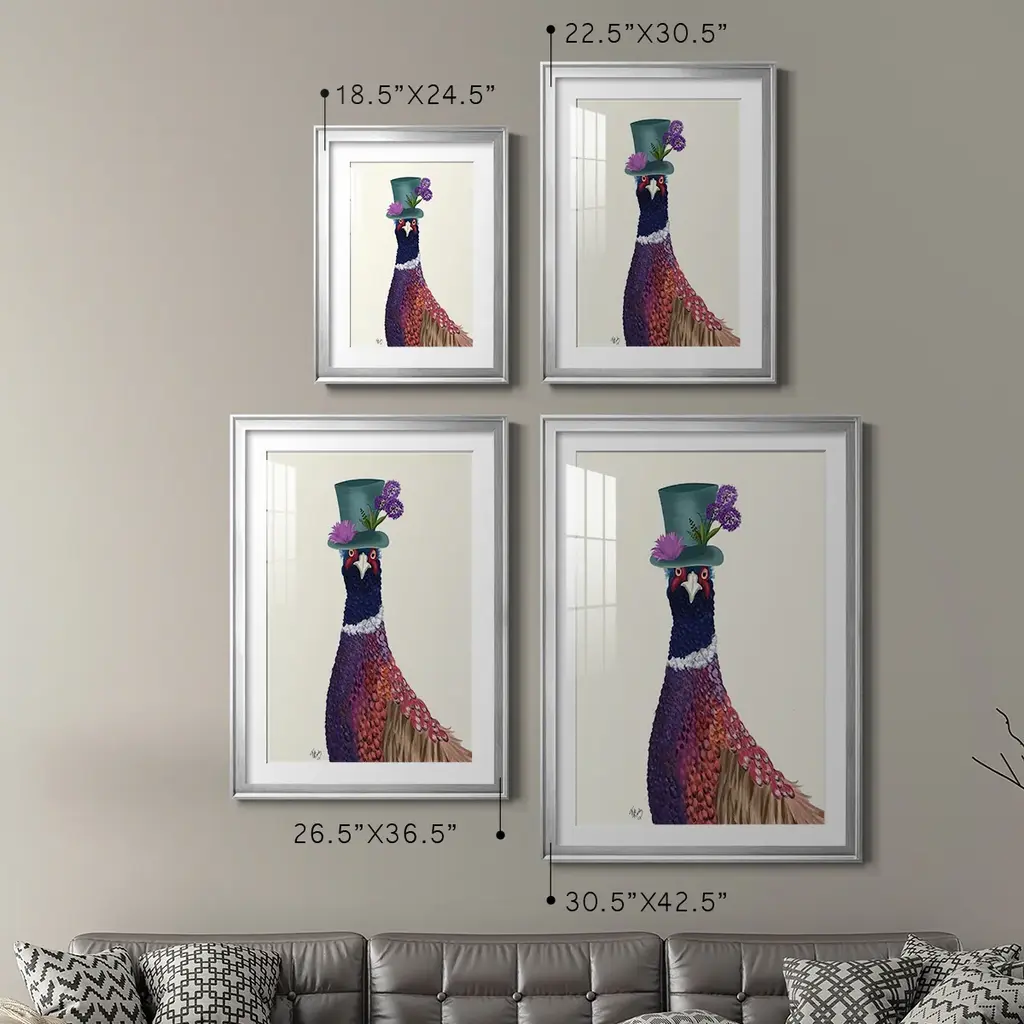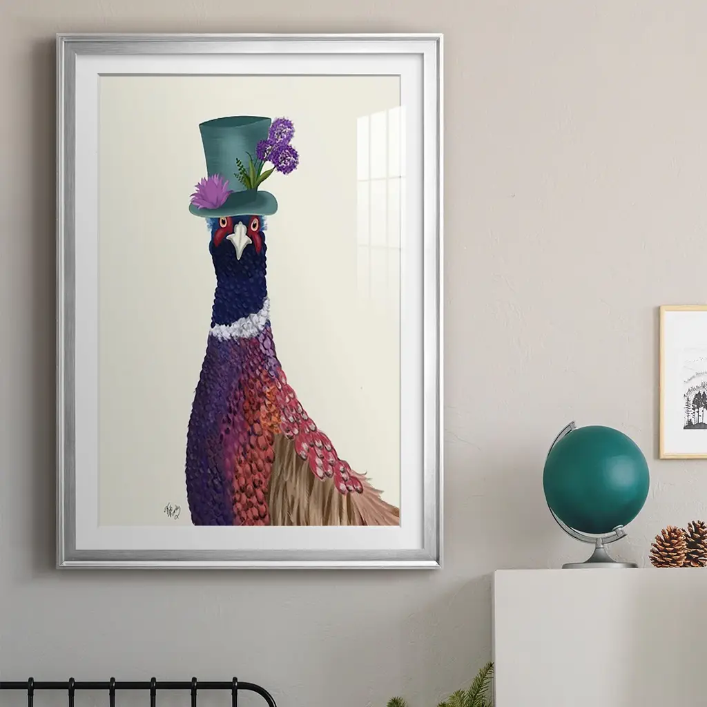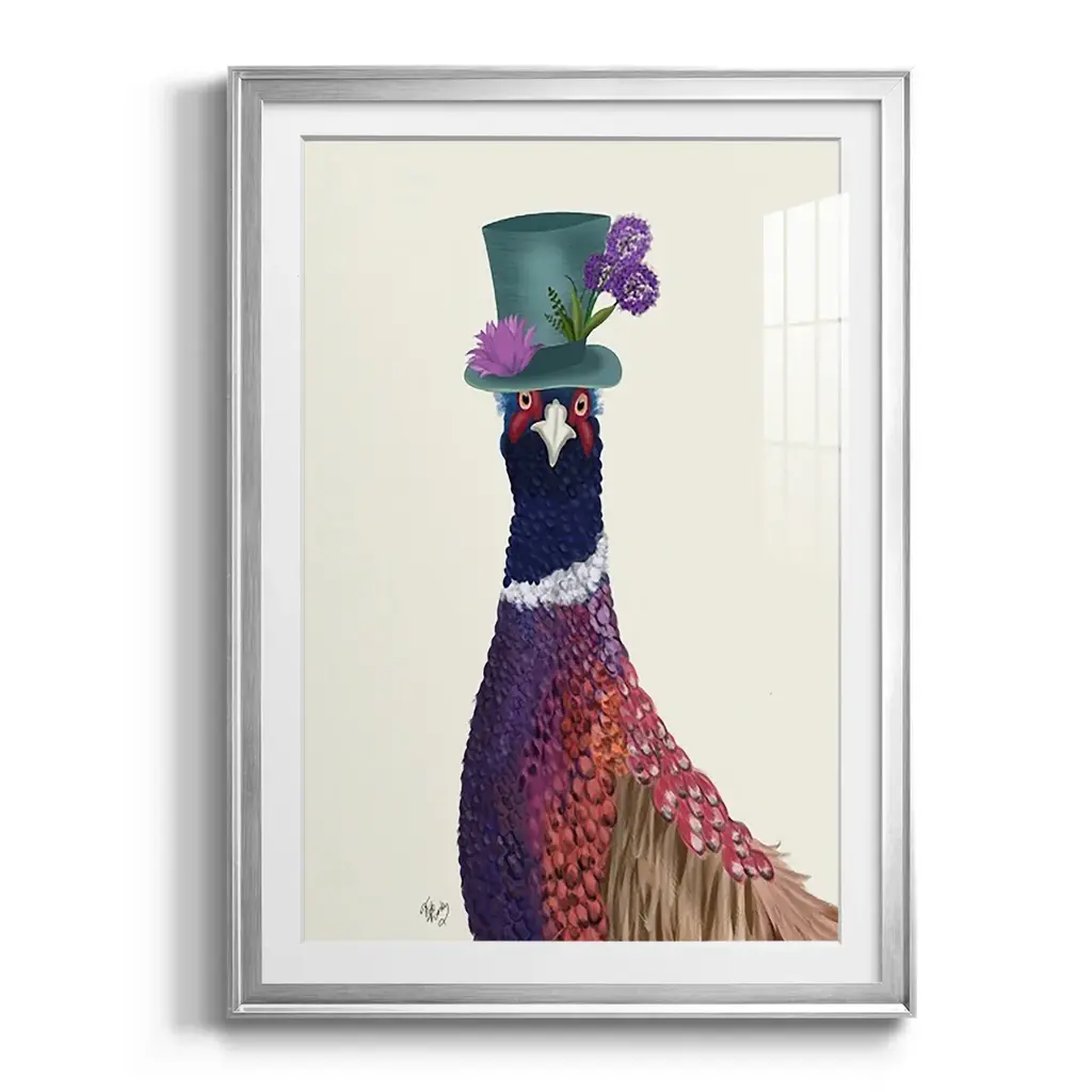 Pheasant In Blue Hat Premium Framed Print - Ready To Hang - 30.5x42.5 - Silver
