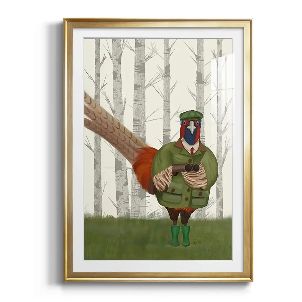 Pheasant Shooting Party 7 Premium Framed Print - Ready to Hang A Premium Framed Print created to last. Framed in distressed wood and available in an array of sizes and colors Featuring a beveled a solid wood stretcher bar, each piece comes ready to hand 4 SIZES AVAILABLE 30.5''X42.5'' - Overall Size 26.5'X36.5'' - Overall Size 22.5''x30.5'' - Overall Size 18.5''x24.5'' - Overall Size Each piece is made to order. Each piece comes with hanging hardware. Made in the USA Ready to Hang Giclee Paper Print Acrylic Glass Beveled Matt Board