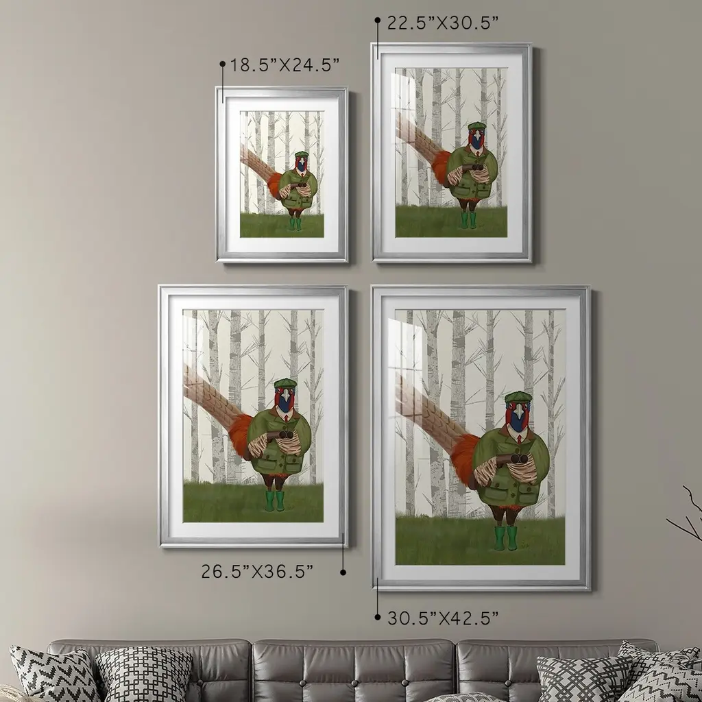 Pheasant Shooting Party 7 Premium Framed Print - Ready to Hang A Premium Framed Print created to last. Framed in distressed wood and available in an array of sizes and colors Featuring a beveled a solid wood stretcher bar, each piece comes ready to hand 4 SIZES AVAILABLE 30.5''X42.5'' - Overall Size 26.5'X36.5'' - Overall Size 22.5''x30.5'' - Overall Size 18.5''x24.5'' - Overall Size Each piece is made to order. Each piece comes with hanging hardware. Made in the USA Ready to Hang Giclee Paper Print Acrylic Glass Beveled Matt Board