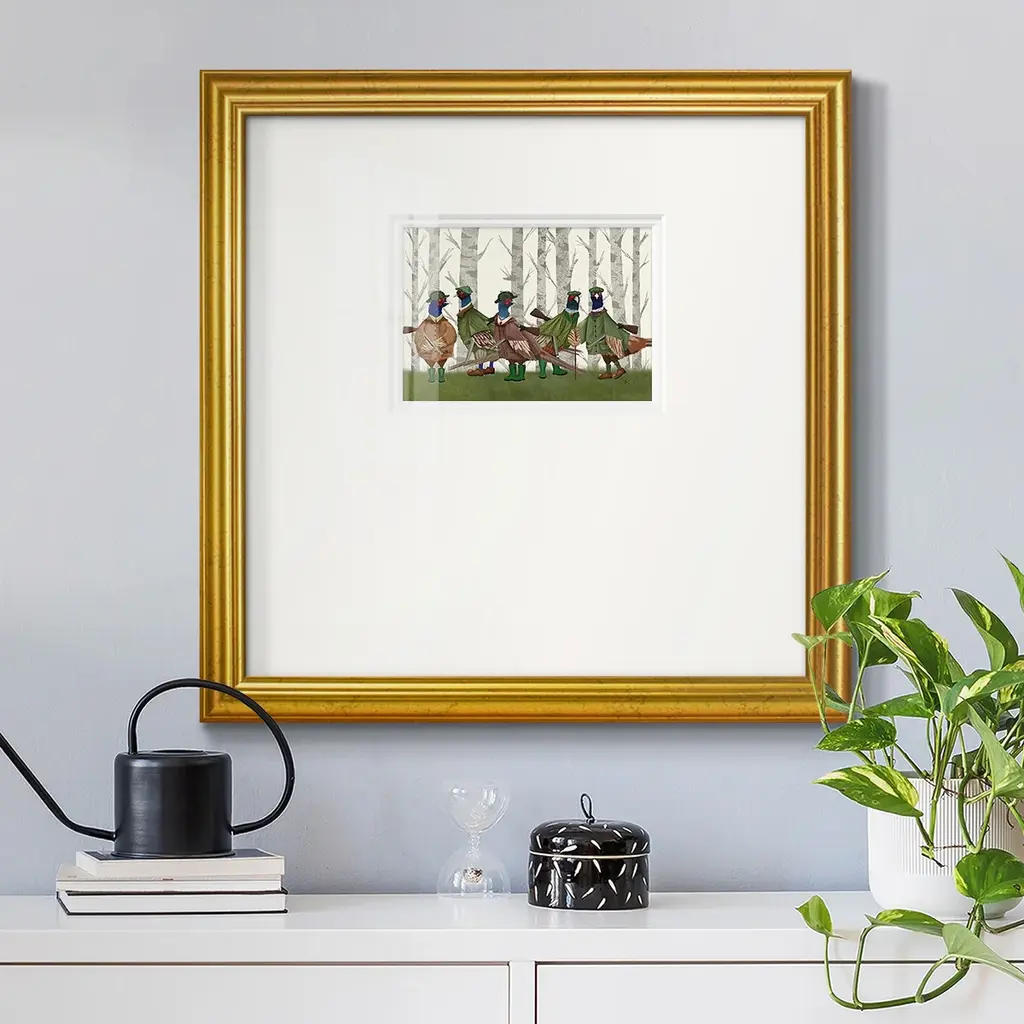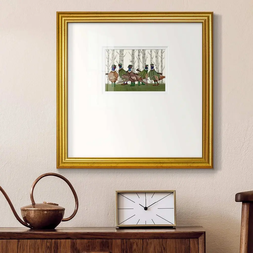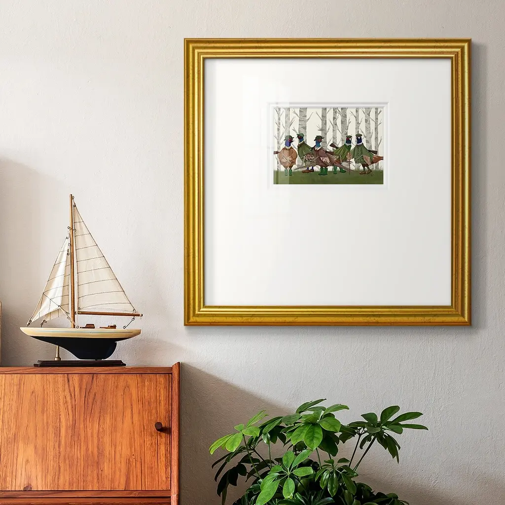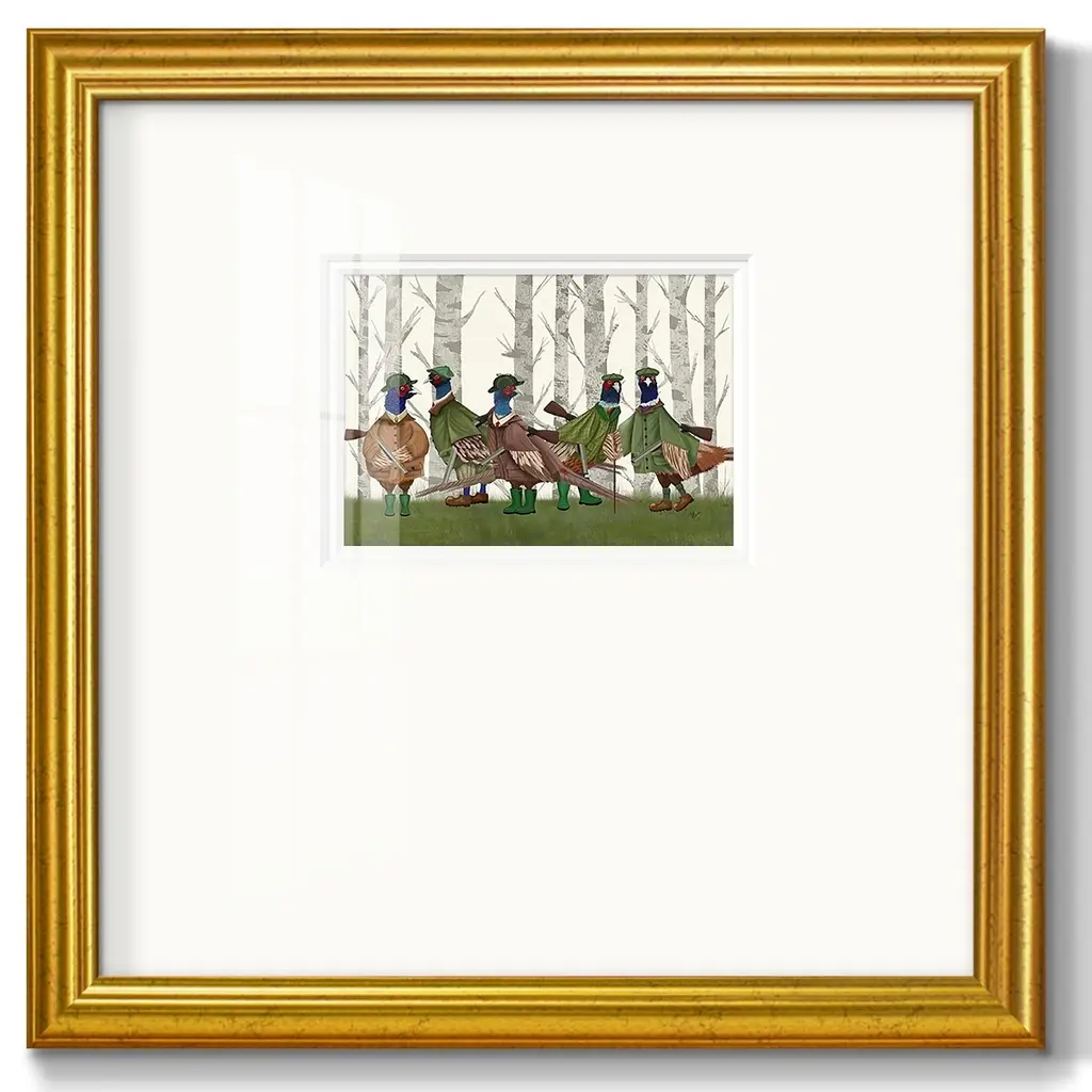 Pheasant Shooting Party Group 3Premium Framed Print - 16x16 - Gold