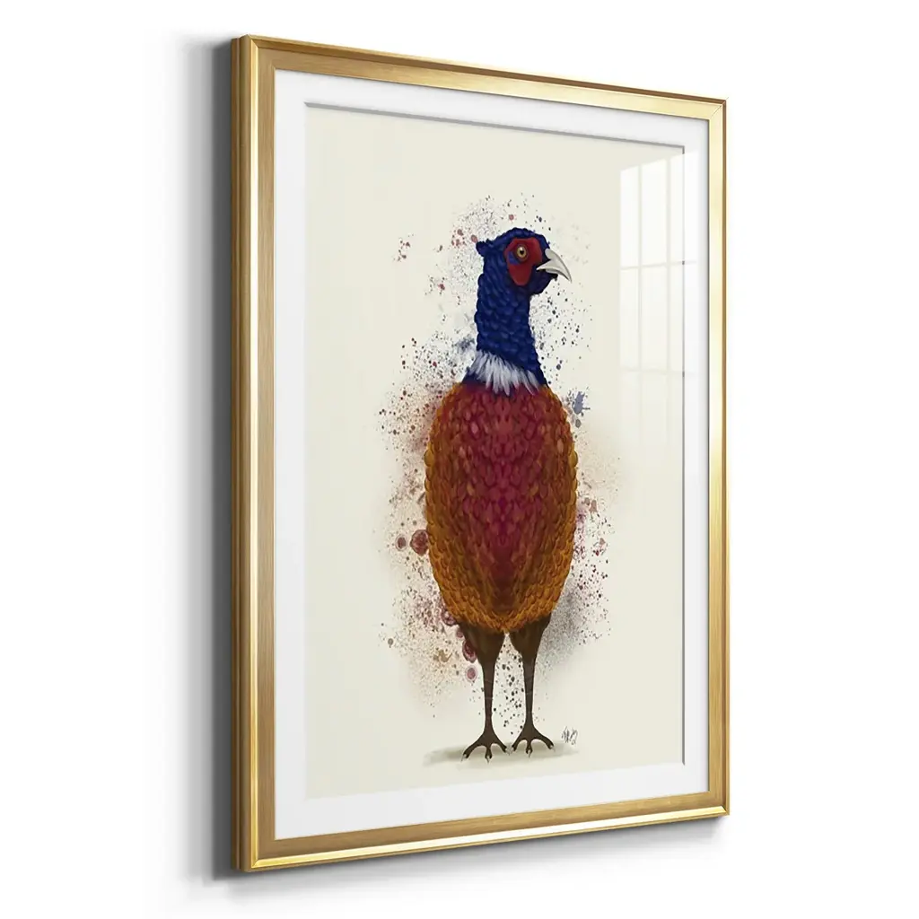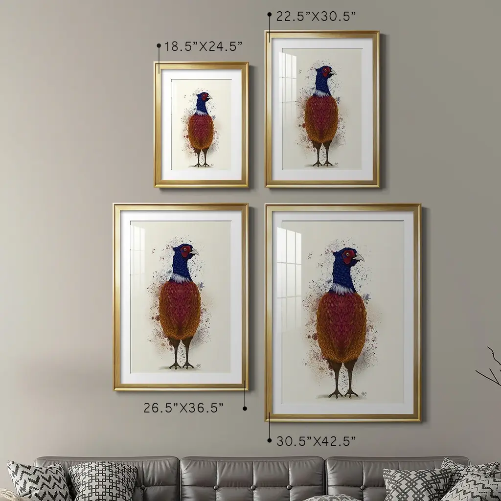 Pheasant Splash 3 Premium Framed Print - Ready to Hang A Premium Framed Print created to last. Framed in distressed wood and available in an array of sizes and colors Featuring a beveled a solid wood stretcher bar, each piece comes ready to hand 4 SIZES AVAILABLE 30.5''X42.5'' - Overall Size 26.5'X36.5'' - Overall Size 22.5''x30.5'' - Overall Size 18.5''x24.5'' - Overall Size Each piece is made to order. Each piece comes with hanging hardware. Made in the USA Ready to Hang Giclee Paper Print Acrylic Glass Beveled Matt Board
