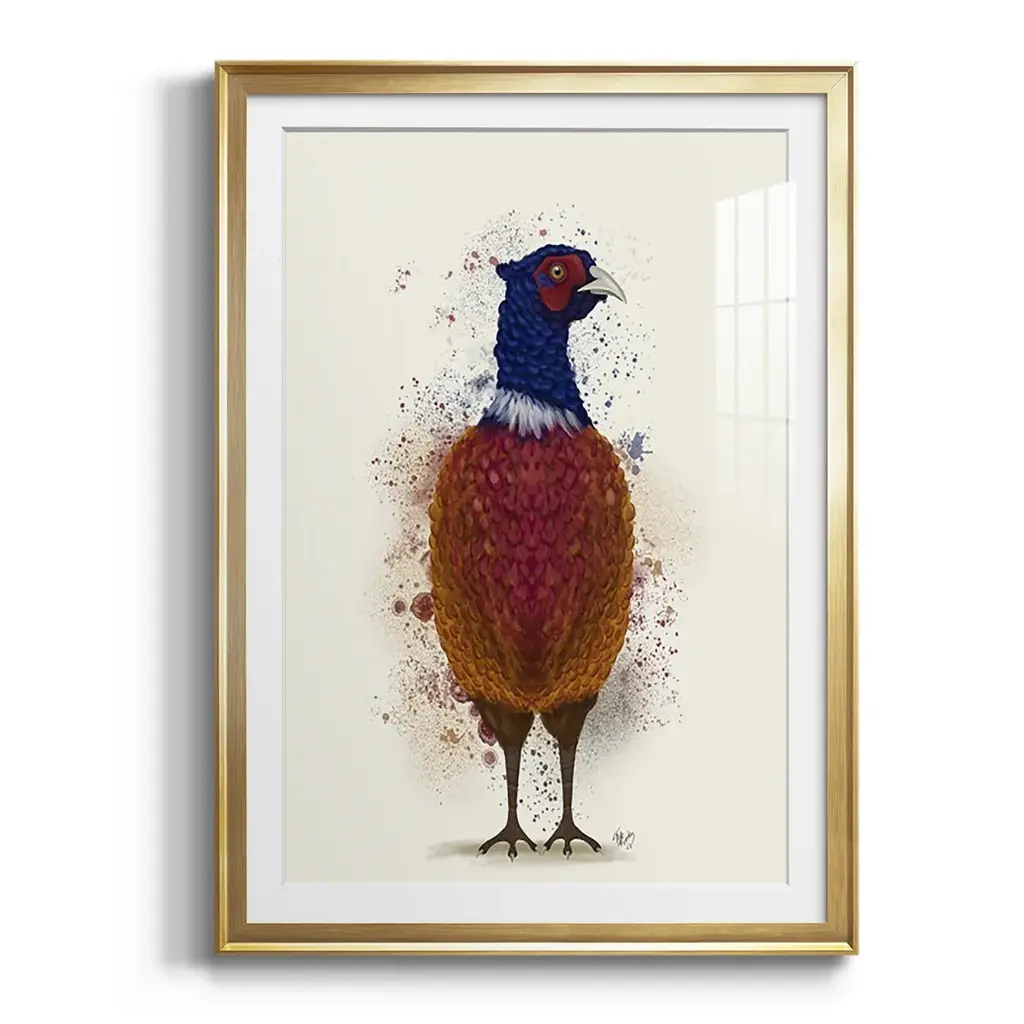 Pheasant Splash 3 Premium Framed Print - Ready to Hang A Premium Framed Print created to last. Framed in distressed wood and available in an array of sizes and colors Featuring a beveled a solid wood stretcher bar, each piece comes ready to hand 4 SIZES AVAILABLE 30.5''X42.5'' - Overall Size 26.5'X36.5'' - Overall Size 22.5''x30.5'' - Overall Size 18.5''x24.5'' - Overall Size Each piece is made to order. Each piece comes with hanging hardware. Made in the USA Ready to Hang Giclee Paper Print Acrylic Glass Beveled Matt Board