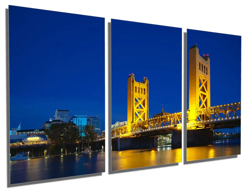 30"œ x 30"œ total size. Ready To Hang! (4 pieces - 15"œ x 15"œ each). 4 Panel Split (Quad) Metal Print of Ben Franklin Bridge and Philadelphia skyline. Modern metal wall art for home or office wall decor & interior design. Printed on Luxurious, HD aluminum glossy metal panels. Multi panel art.. HD aluminum panels. Metal print wall art. Includes Shadow Wall Mount on the back.• Aluminum Metal Wall Art• Made in USA• Ready to hang - No assembly required• Shadow mount hardware on the back• 0.045"œ thick HD Aluminum Panels• Scratch resistant, glossy finish• Superb color clarity, luxurious prints• Epson printing process• For indoor or moisture rich environment use• Easy to clean. Gently wipe with microfiber cloth.