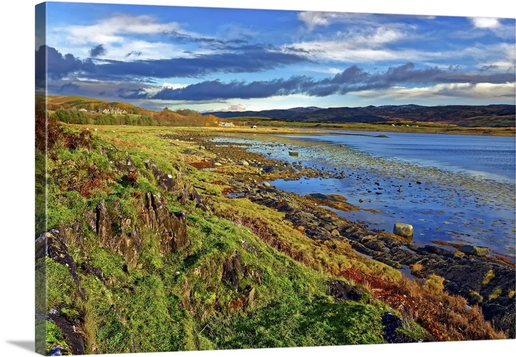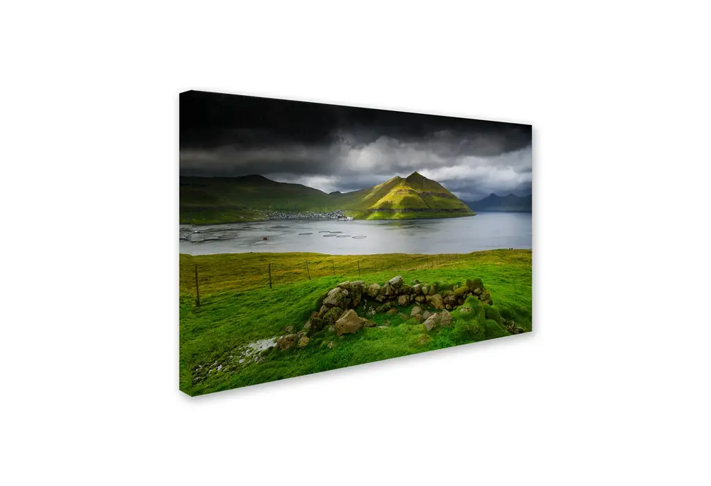 Artist: Philippe Sainte-LaudySubject: LandscapesStyle: ContemporaryProduct Type: Gallery-Wrapped Canvas ArtMade in USAThis ready to hang, gallery-wrapped art piece features rocks and grassy mountains surrounding a still lake under a dark, cloudy sky.Photographer by passion for years, Philippe took an immediate liking to photographing landscape and nature. Always in search of the best light and the most original angle, he maintains a constant search for the most beautiful places surrounding him. Philippe prides himself in understanding the complex interactions between light, weather, landscape, the tides, plants and animals. He finds it is important to have a deep respect for this planet and its inhabitants. Philippe hopes that his photography can bring people closer to nature and encourage them to preserve it for future generations.Giclee (jee-clay) is an advanced printmaking process for creating high quality fine art reproductions. The attainable excellence that Giclee printmaking affords makes the reproduction virtually indistinguishable from the original piece. The result is wide acceptance of Giclee by galleries, museums, and private collectors. Gallery wrap is a method of stretching an artist's canvas so that the canvas wraps around the sides and is secured a hidden, wooden frame. This method of stretching and preparing a canvas allows for a frameless presentation of the finished painting.Whether it's a contemporary, rustic, modern, or traditional style decor, Trademark Fine Art offers a variety of high-quality, carefully built wall art that will surely complement any style. We provide an abundance of art themes that range from fascinating abstracts to breathtaking landscapes, in an assortment of sizes that will certainly bring excitement to any area of your home. From the bedroom to the living room, or even the office, Trademark Fine Art makes professionally handcrafted, ready to hang wall decor that will be admired for years to come!IMPORTANT: Avoid buying counterfeit products and transacting with unauthorized sellers. Trademark Fine Art is committed to providing the consumer with the absolute best price and value on our entire line of products, which we ensure by applying a rigorous Quality Control process. Trademark Fine Art is a registered trademark protected by U.S. Trademark law and will be vigorously defended.