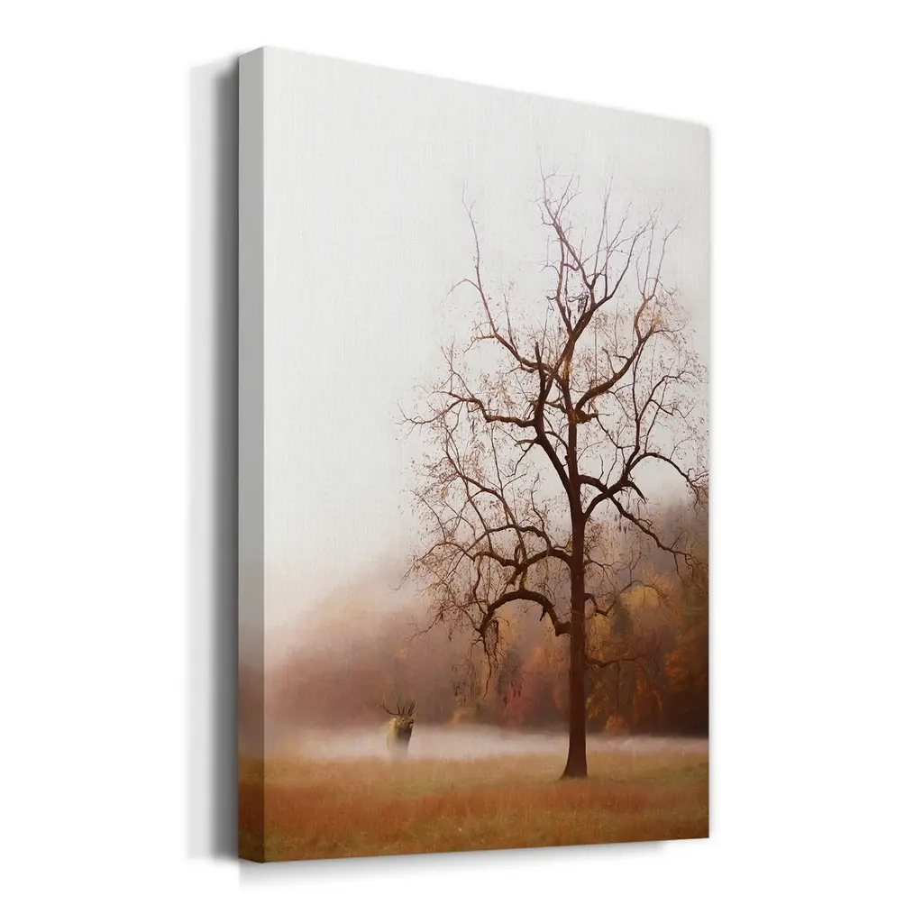 Photography Study Elk in the Mist Premium Gallery Wrapped Canvas - Ready to Hang A premium hand stretched gallery wrapped canvas print created to last. Featuring a beveled a solid wood stretcher bar, each piece comes ready to hand 6 SIZES AVAILABLE 8''X12'' - Overall Size 12''X18'' - Overall Size 18''X27'' - Overall Size 24''x36'' - Overall Size 32''x48'' - Overall Size 40''x60'' - Overall Size Each piece is made to order. Built to Last Each piece comes ready to hang Solid wood stretcher Fade and Water resistant Made domestically