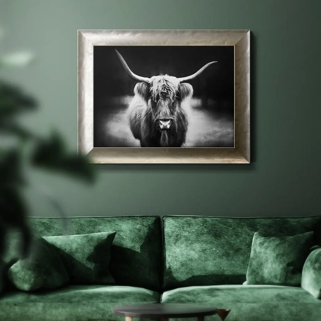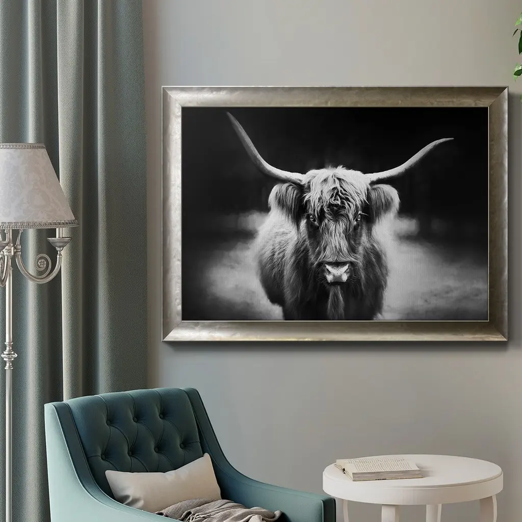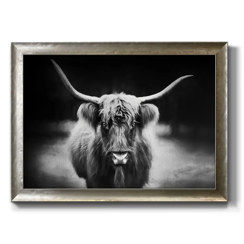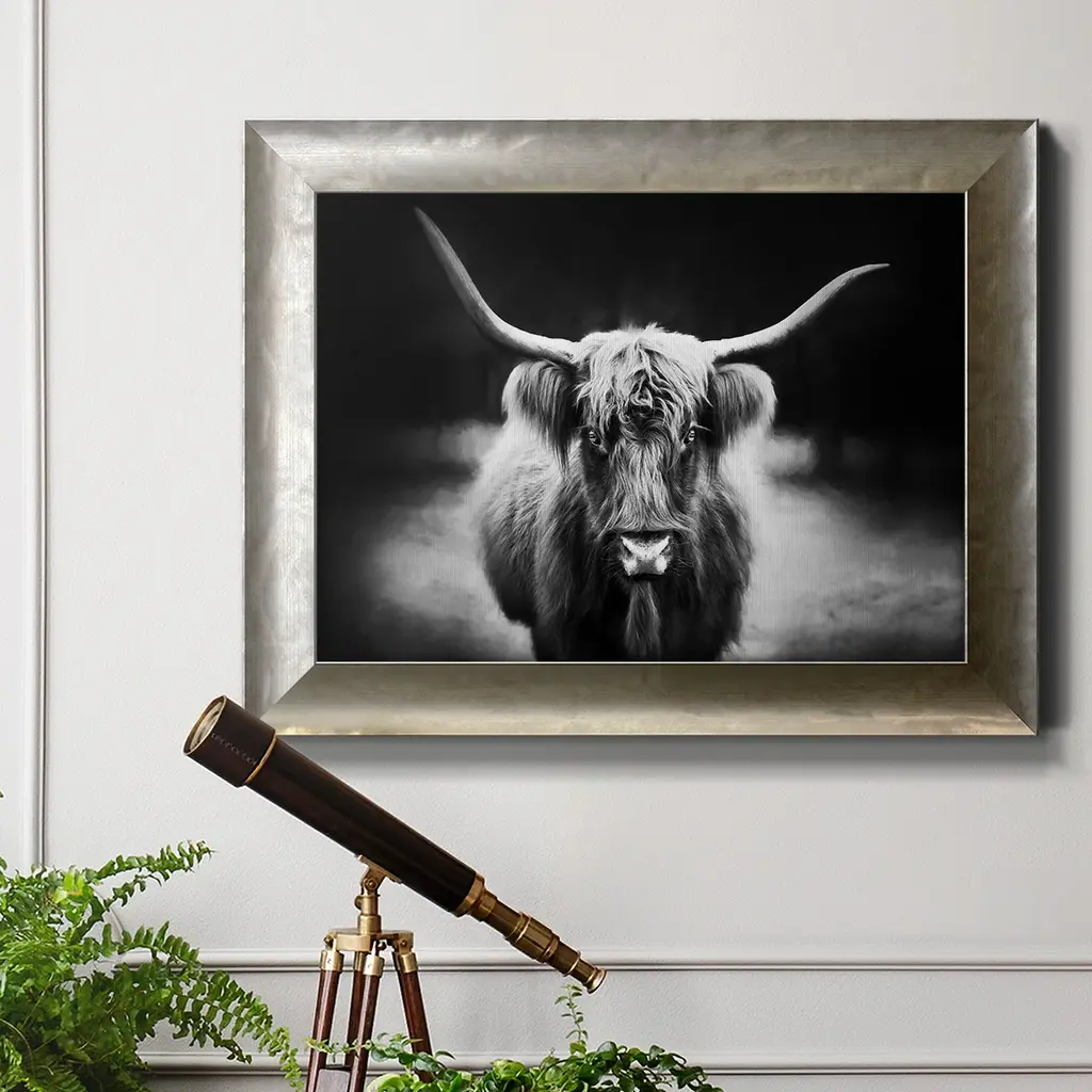 Photography Study Highland Cattle Premium Framed Canvas- Ready To Hang - 16x20 - Silver
