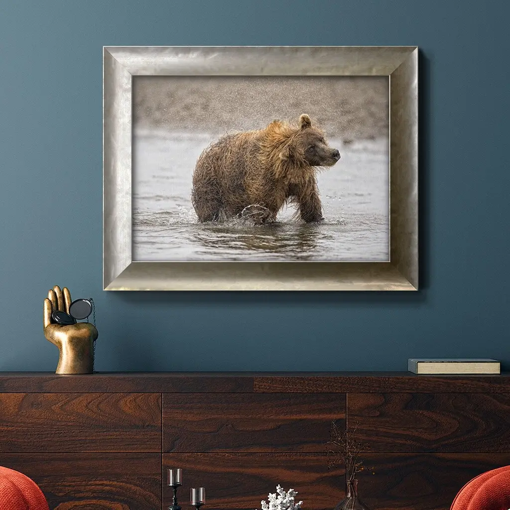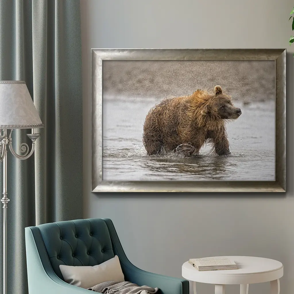 Photography Study Shake it Off Premium Framed Canvas- Ready to Hang A Premium Framed Canvas created to last. Framed in distressed wood and available in an array of sizes and colors Featuring a beveled a solid wood stretcher bar, each piece comes ready to hand 3 SIZES AVAILABLE 16''X20'' - Overall Size 18'X27'' - Overall Size 24''x36'' - Overall Size Each piece is made to order. Each piece comes with hanging hardware. Made in the USA Ready to Hang Giclee Paper Print Acrylic Glass Beveled Matt Board