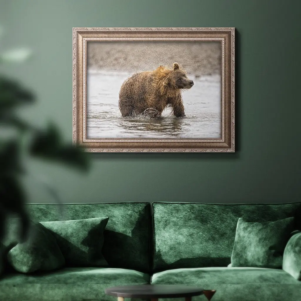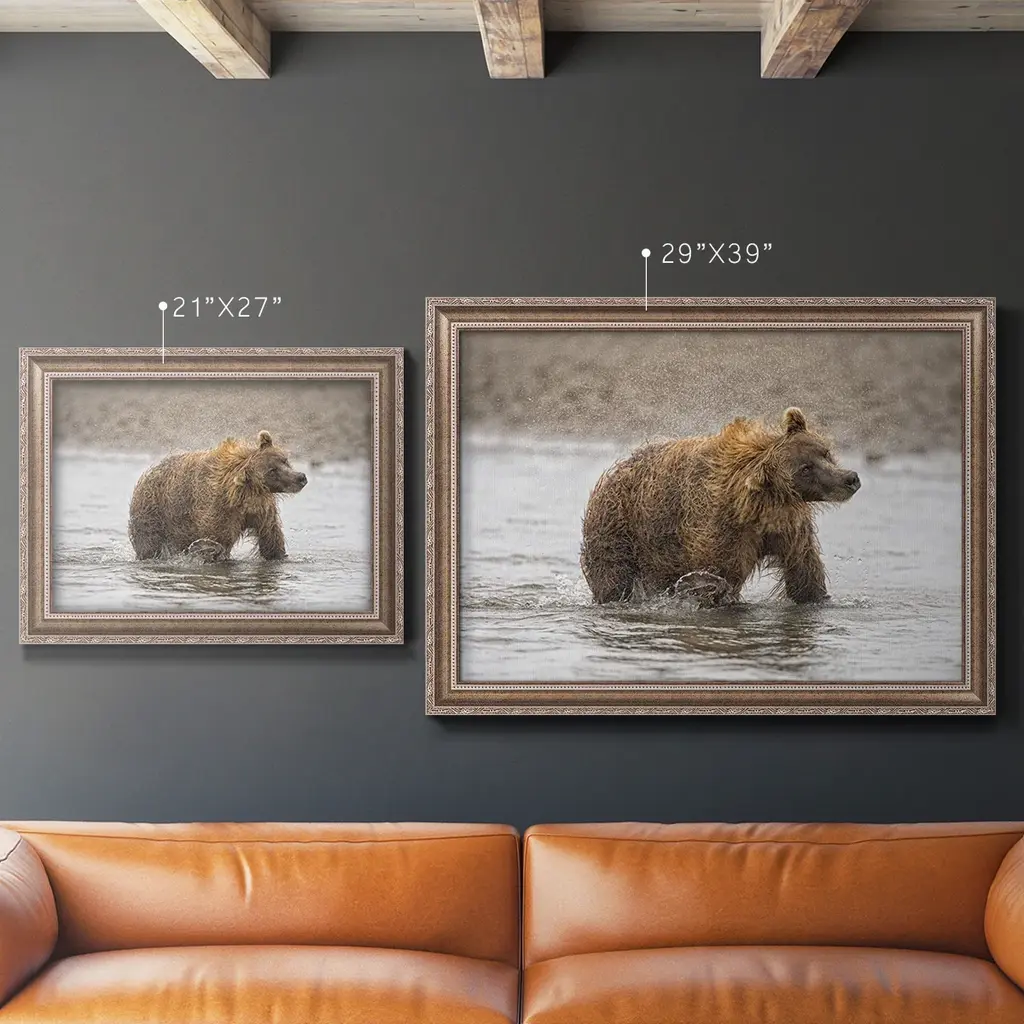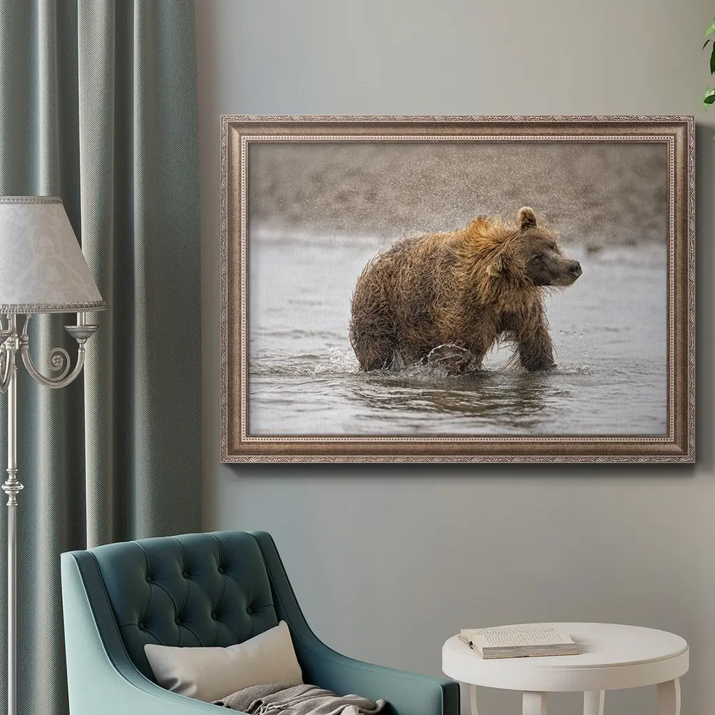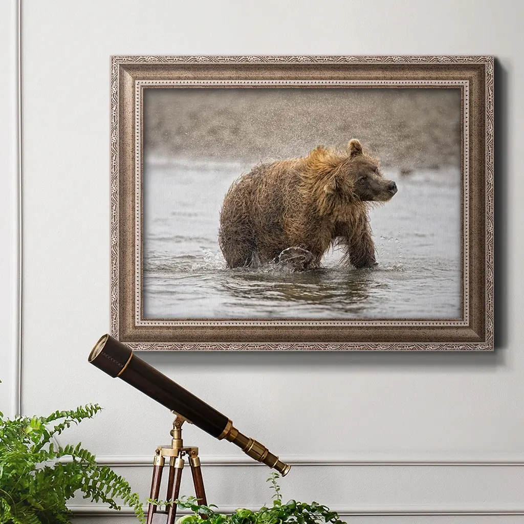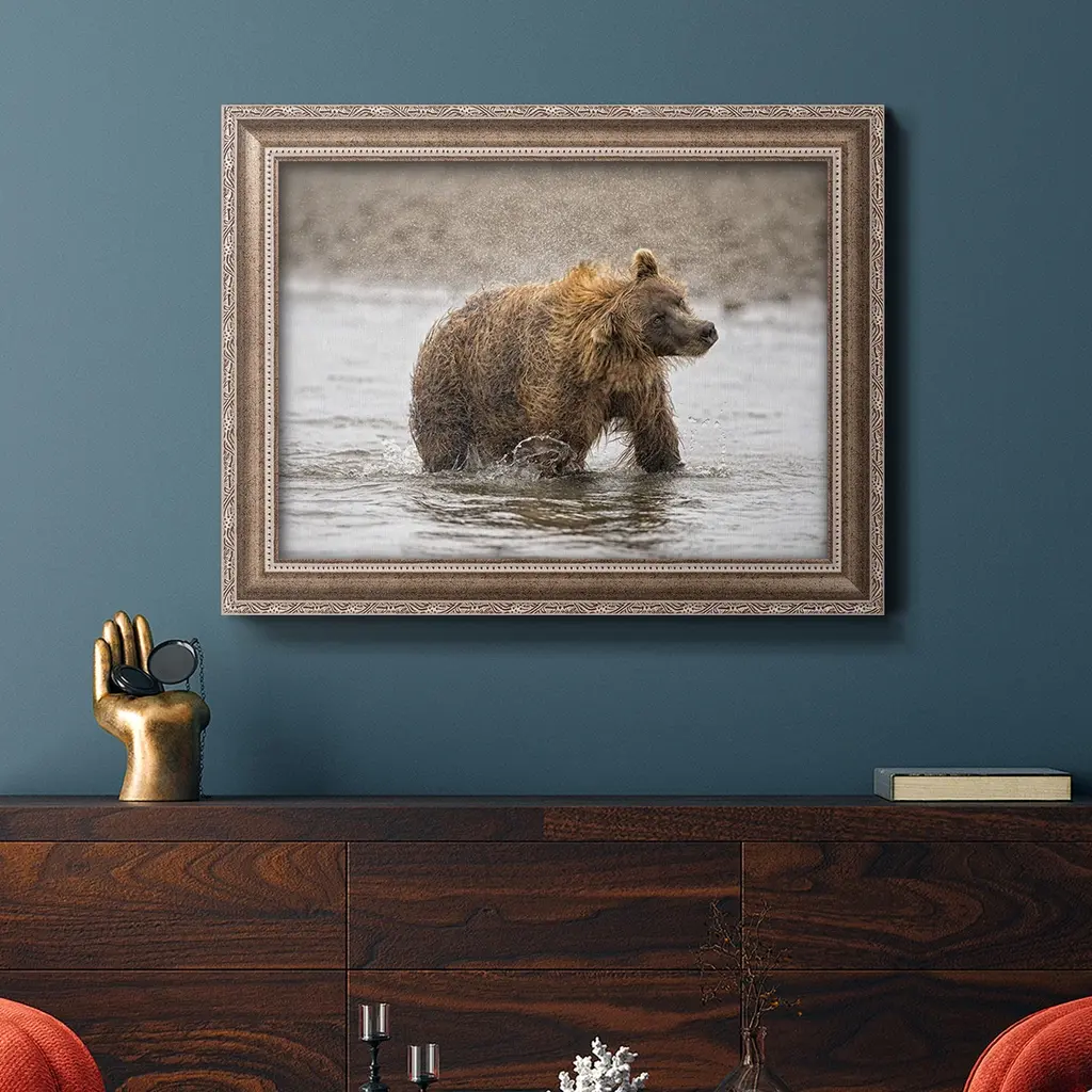Photography Study Shake it Off Premium Framed Canvas- Ready to Hang A Premium Framed Canvas created to last. Framed in distressed wood and available in an array of sizes and colors Featuring a beveled a solid wood stretcher bar, each piece comes ready to hand 3 SIZES AVAILABLE 16''X20'' - Overall Size 18'X27'' - Overall Size 24''x36'' - Overall Size Each piece is made to order. Each piece comes with hanging hardware. Made in the USA Ready to Hang Giclee Paper Print Acrylic Glass Beveled Matt Board