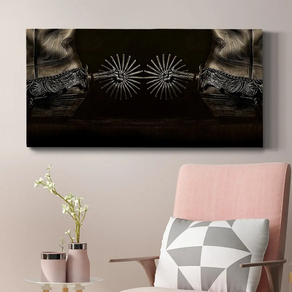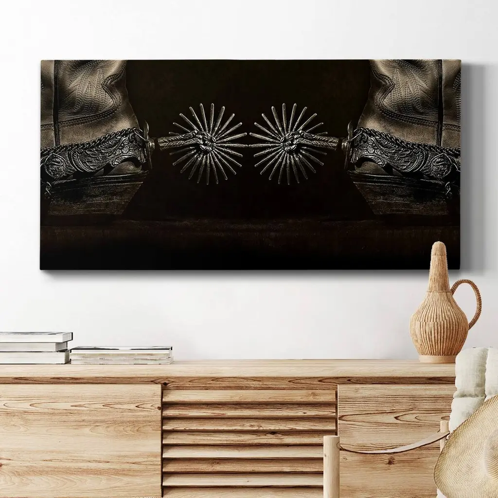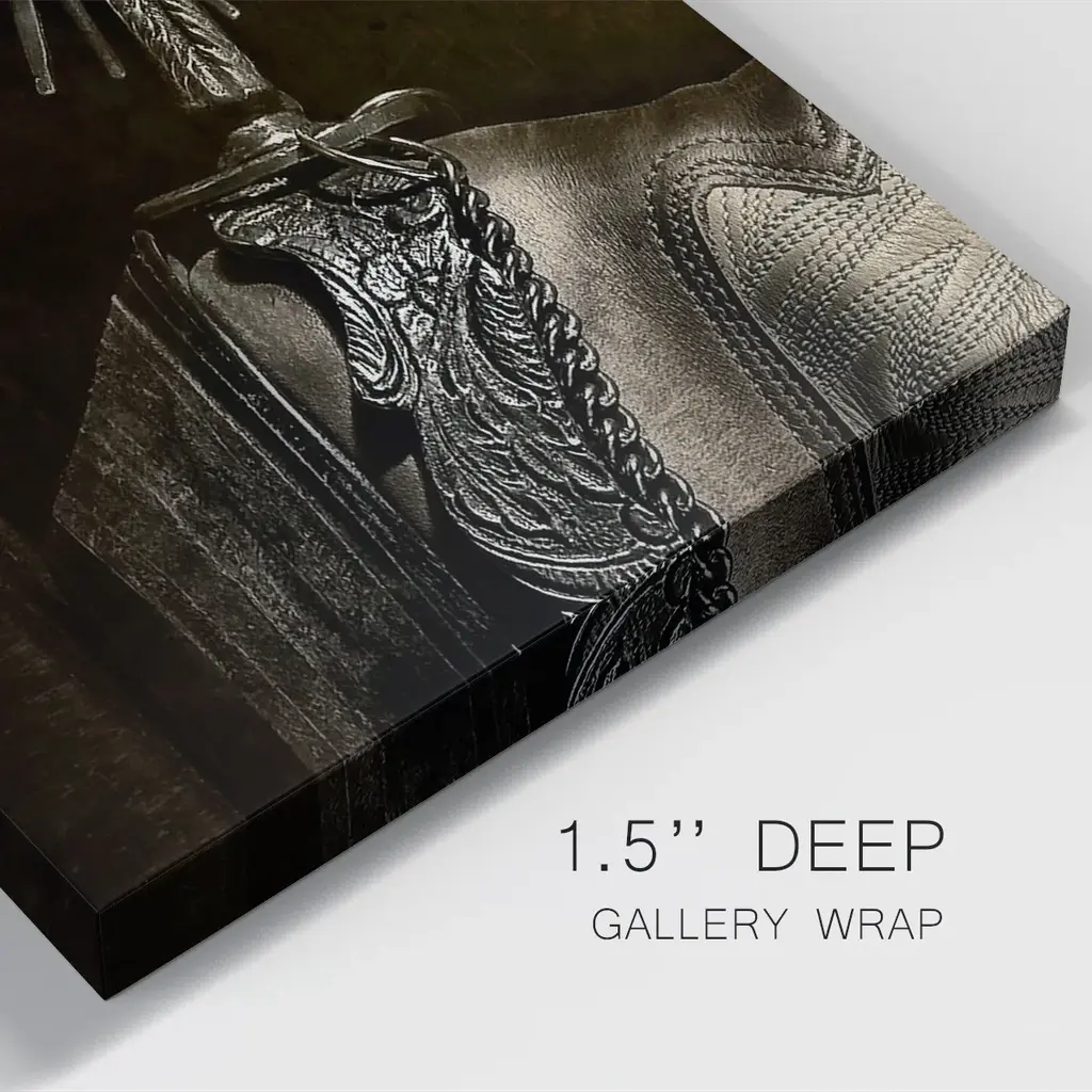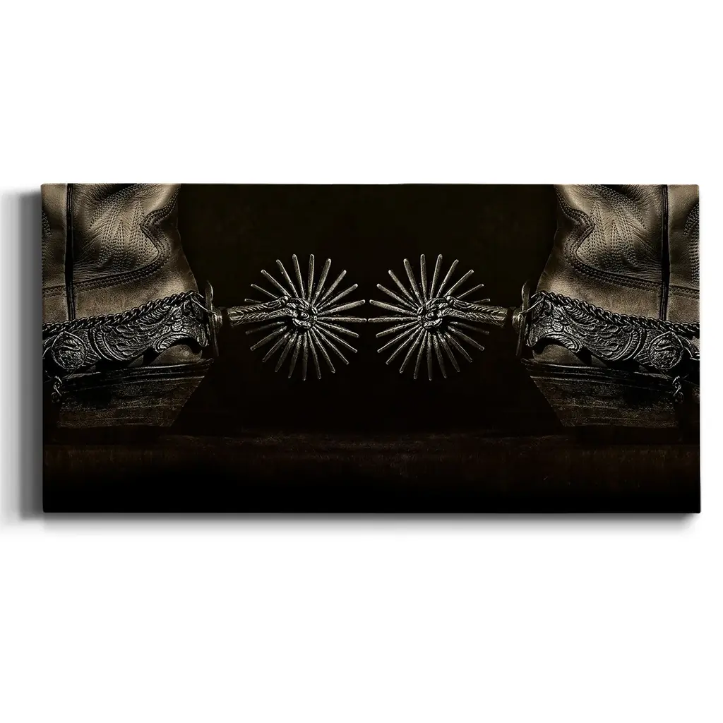 Photography Study Spurs- Premium Gallery Wrapped Canvas - Ready to Hang A premium hand stretched gallery wrapped canvas print created to last. Featuring a beveled a solid wood stretcher bar, each piece comes ready to hand 3 SIZES AVAILABLE 8''X16'' - Overall Size 12"X24'' - Overall Size 20''x40'' - Overall Size Each piece is made to order. Built to Last Each piece comes ready to hang Solid wood stretcher Fade and Water resistant Made domestically