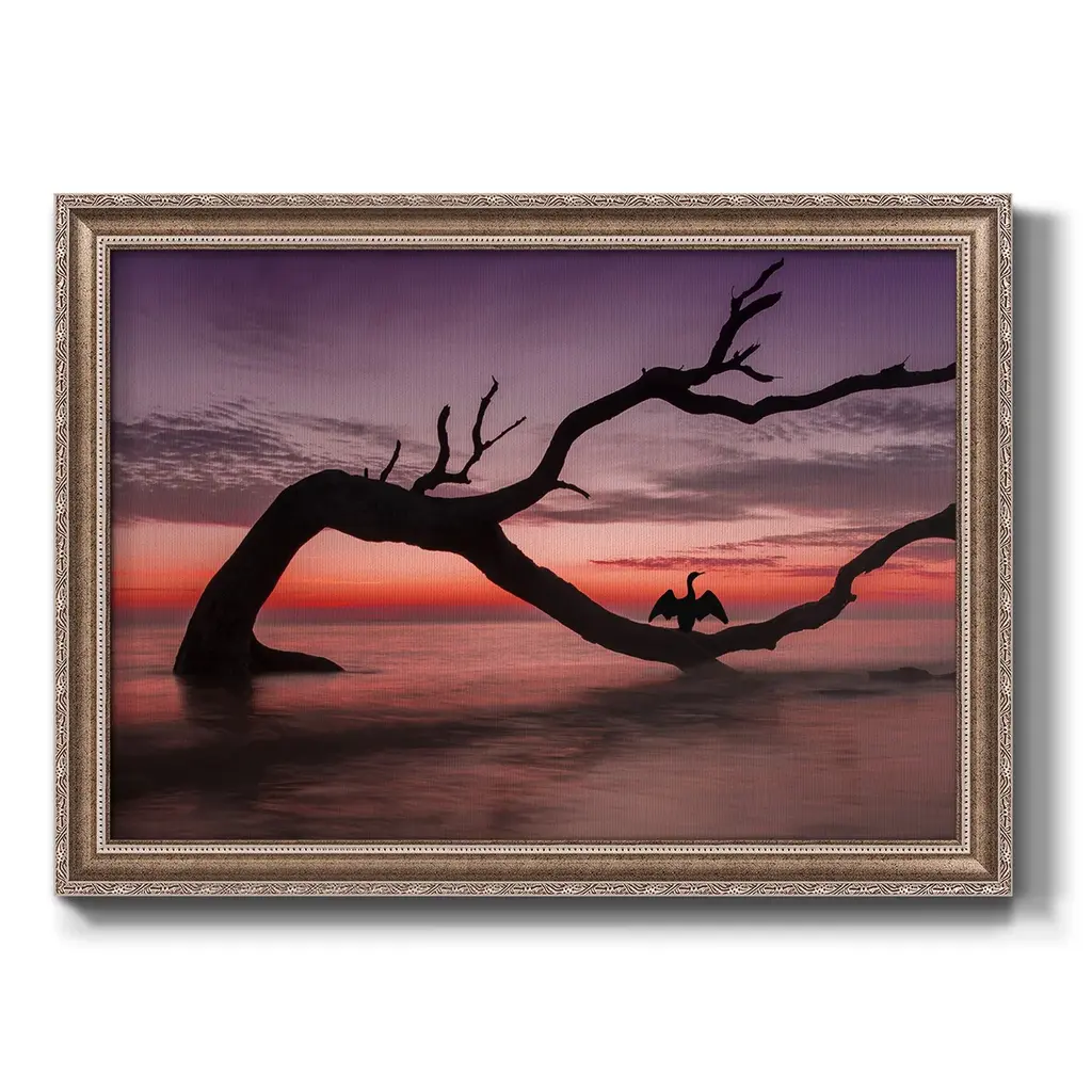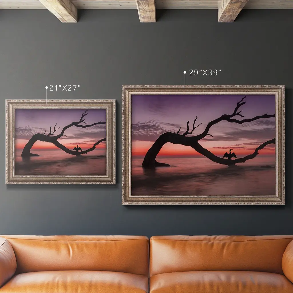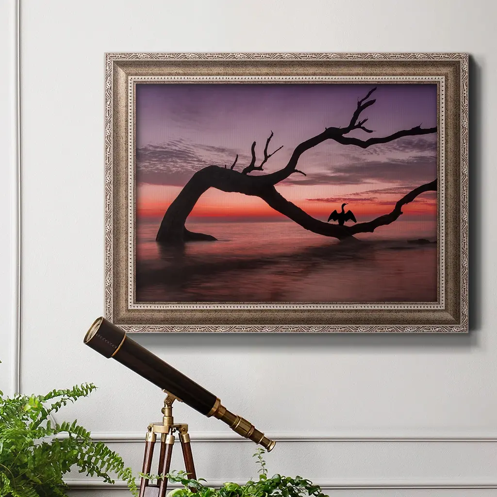Photography Study Sunset Beach Premium Framed Canvas- Ready to Hang A Premium Framed Canvas created to last. Framed in distressed wood and available in an array of sizes and colors Featuring a beveled a solid wood stretcher bar, each piece comes ready to hand 3 SIZES AVAILABLE 16''X20'' - Overall Size 18'X27'' - Overall Size 24''x36'' - Overall Size Each piece is made to order. Each piece comes with hanging hardware. Made in the USA Ready to Hang Giclee Paper Print Acrylic Glass Beveled Matt Board