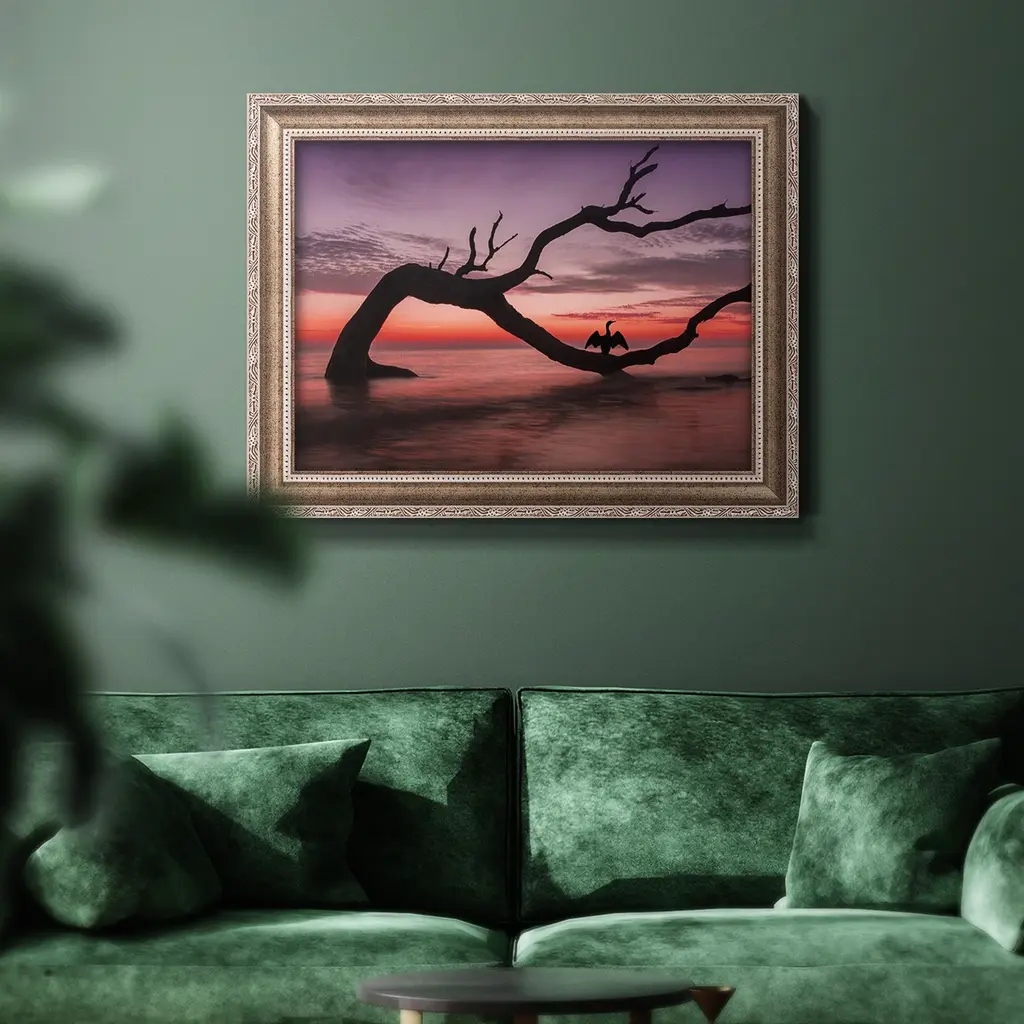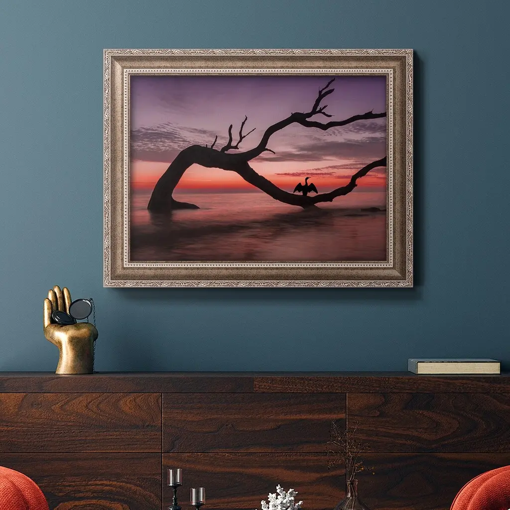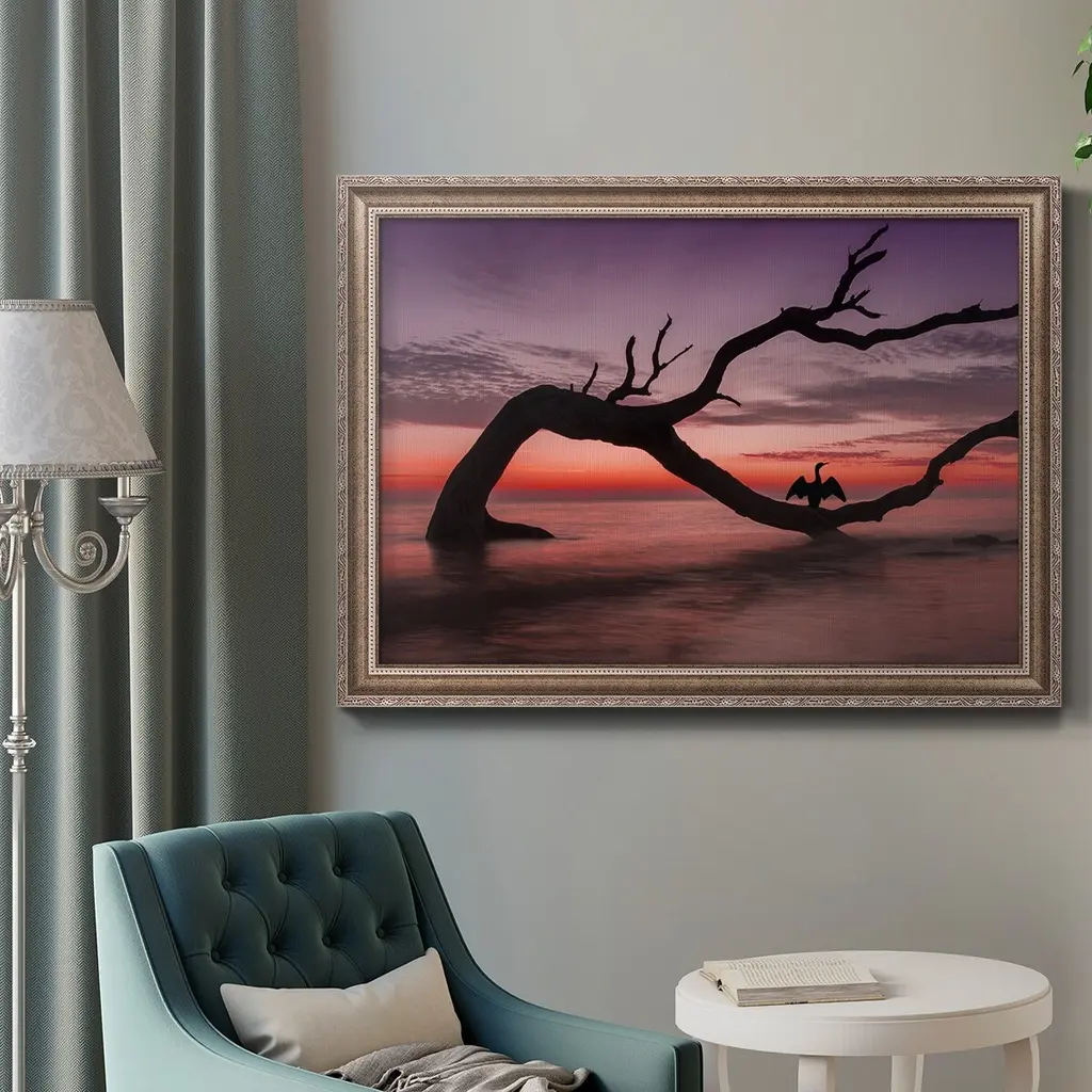 Photography Study Sunset Beach Premium Framed Canvas- Ready to Hang A Premium Framed Canvas created to last. Framed in distressed wood and available in an array of sizes and colors Featuring a beveled a solid wood stretcher bar, each piece comes ready to hand 3 SIZES AVAILABLE 16''X20'' - Overall Size 18'X27'' - Overall Size 24''x36'' - Overall Size Each piece is made to order. Each piece comes with hanging hardware. Made in the USA Ready to Hang Giclee Paper Print Acrylic Glass Beveled Matt Board