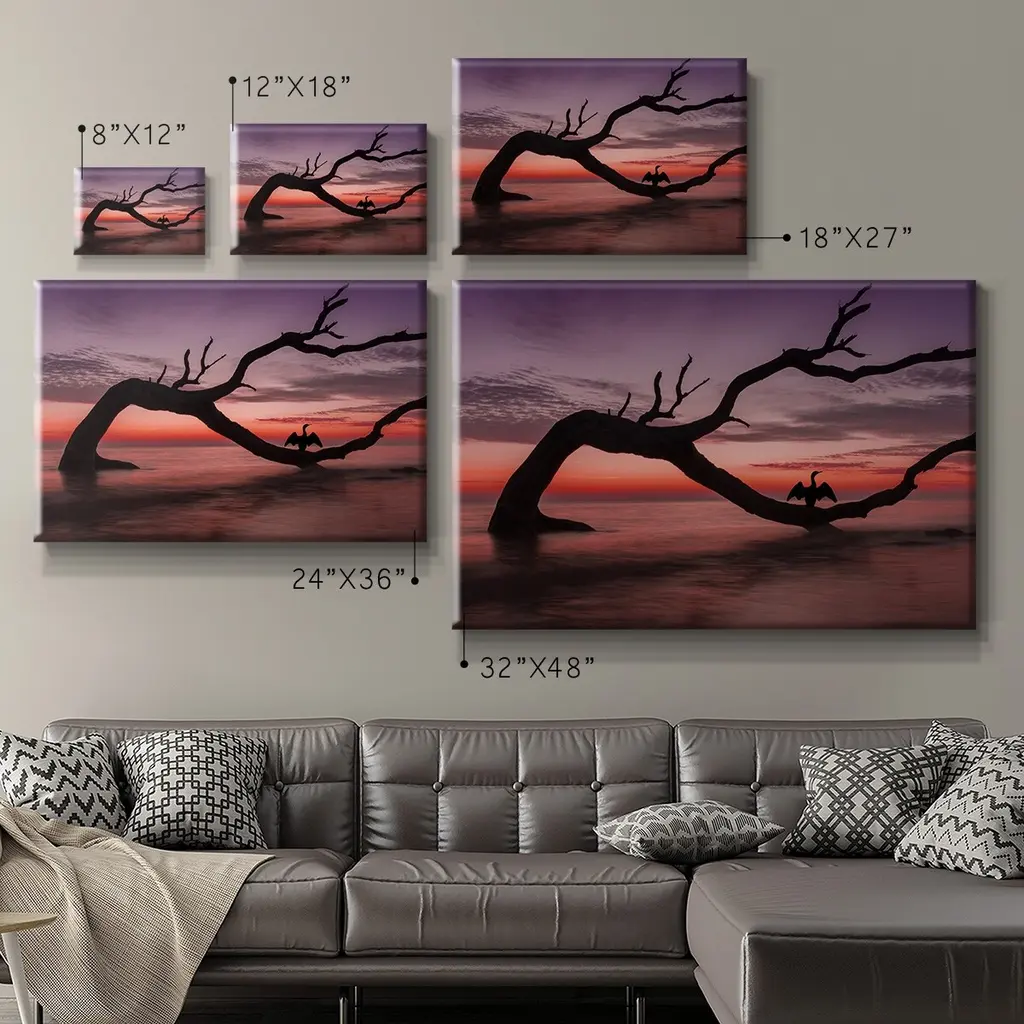 Photography Study Sunset Beach Premium Gallery Wrapped Canvas - Ready to Hang A premium hand stretched gallery wrapped canvas print created to last. Featuring a beveled a solid wood stretcher bar, each piece comes ready to hand 6 SIZES AVAILABLE 8''X12'' - Overall Size 12''X18'' - Overall Size 18''X27'' - Overall Size 24''x36'' - Overall Size 32''x48'' - Overall Size 40''x60'' - Overall Size Each piece is made to order. Built to Last Each piece comes ready to hang Solid wood stretcher Fade and Water resistant Made domestically