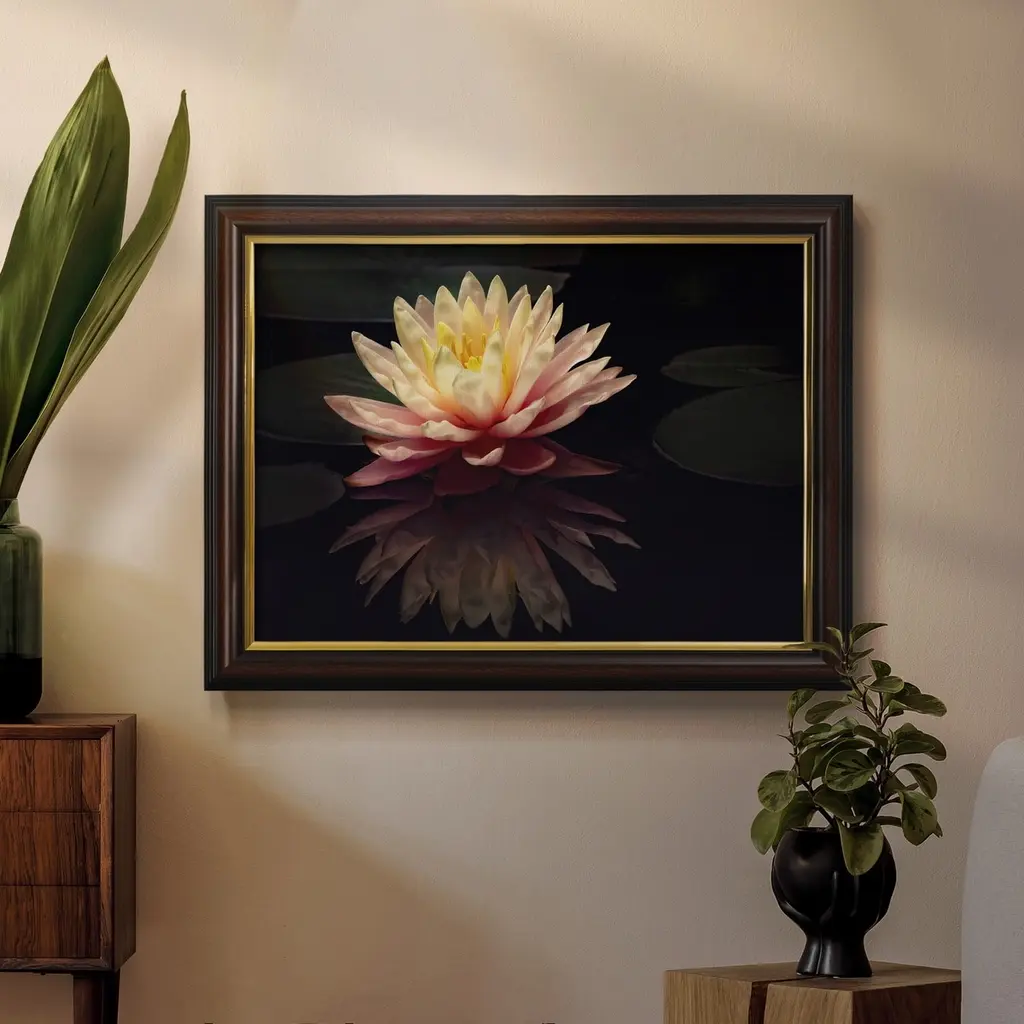 Photography Study Water Lily Premium Framed Canvas- Ready To Hang - 16x20 - Mahogany