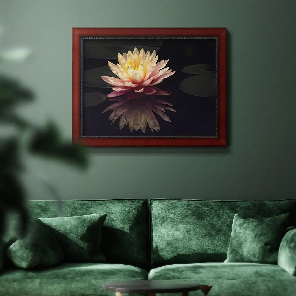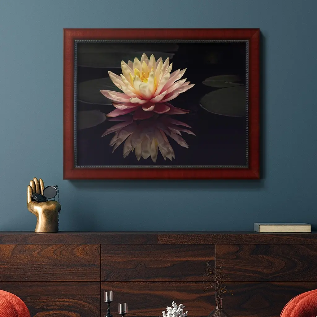Photography Study Water Lily Premium Framed Canvas- Ready To Hang - 18x27 - Mahogany
