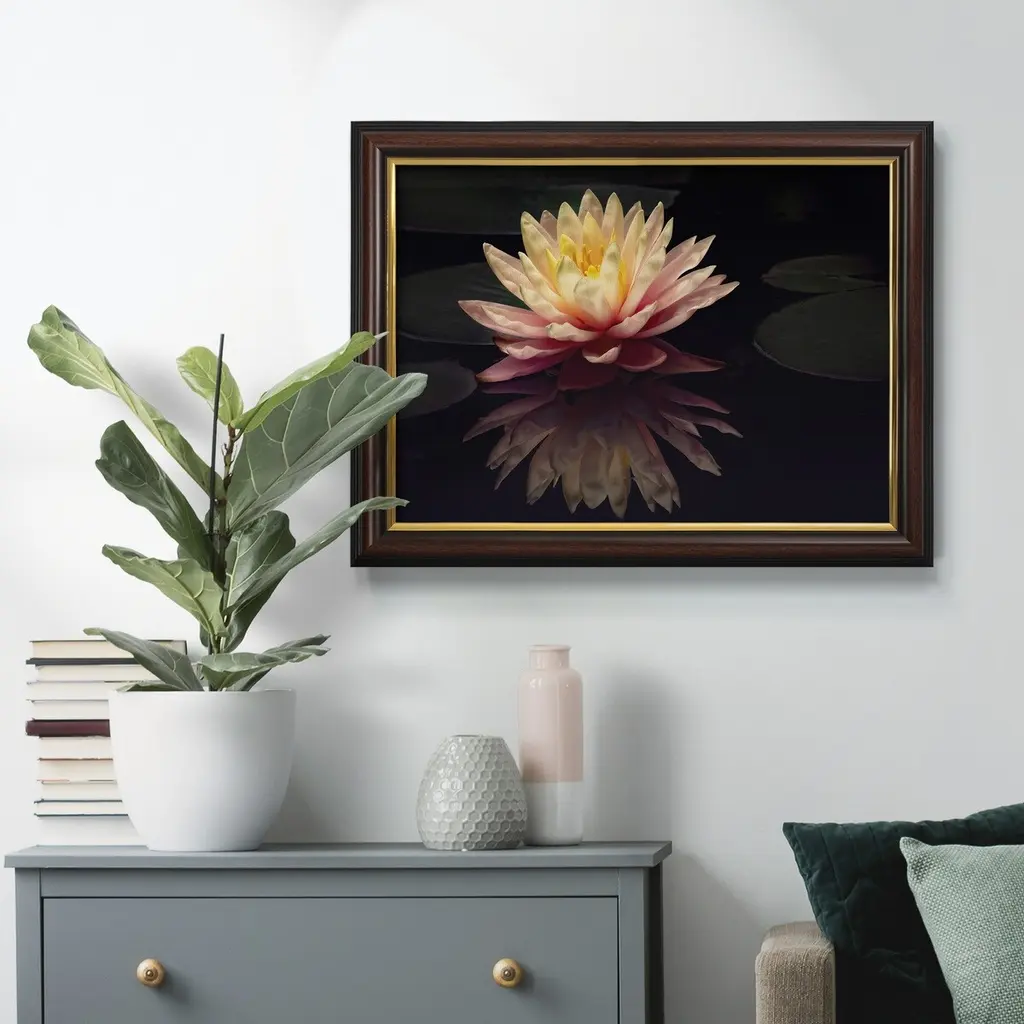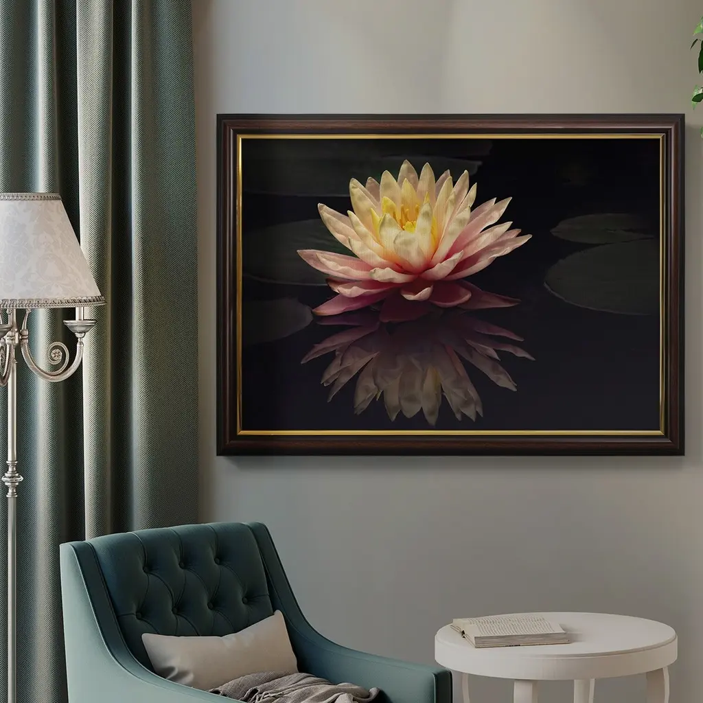 Photography Study Water Lily Premium Framed Canvas- Ready To Hang - 18x27 - Mahogany