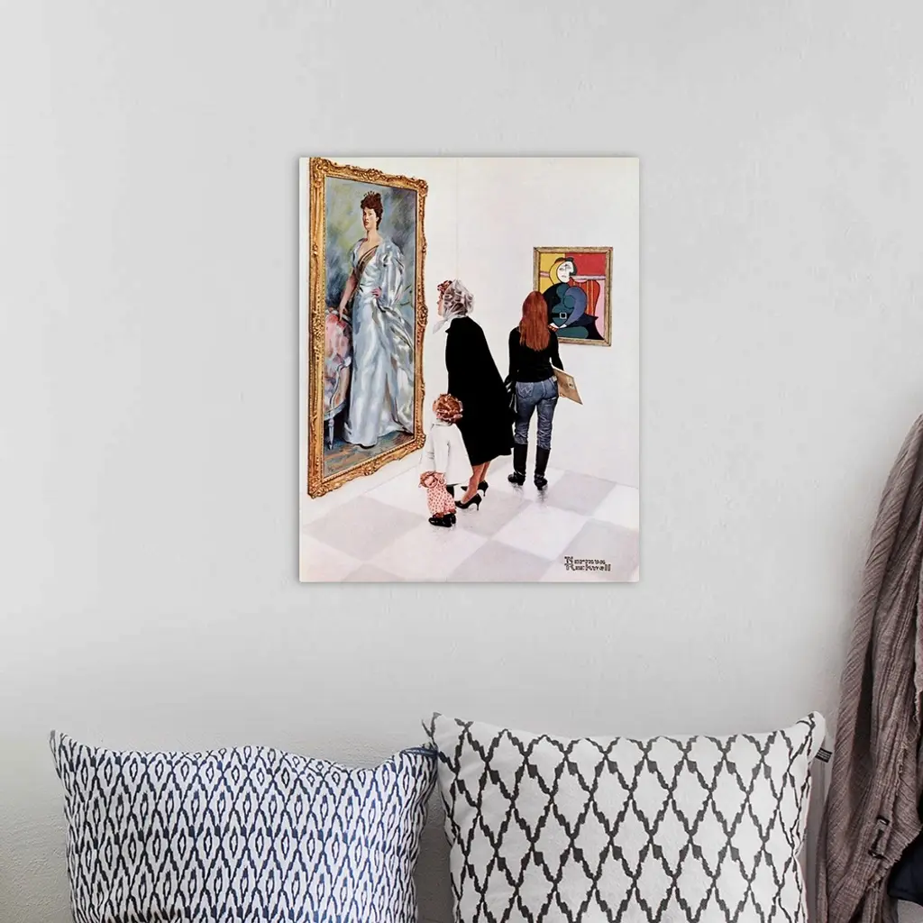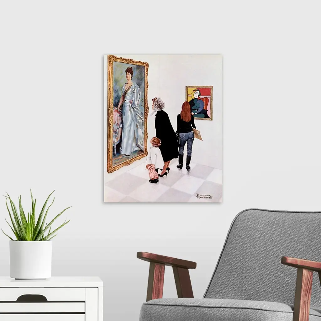 Norman Rockwell's paintings and illustrations are popular for their reflection of American culture. His artwork depicts traditional home and family life while evoking a sense of nostalgia in its viewers and utilizing humor to provide an escape from the mundane. Approved by the Norman Rockwell Family Agency