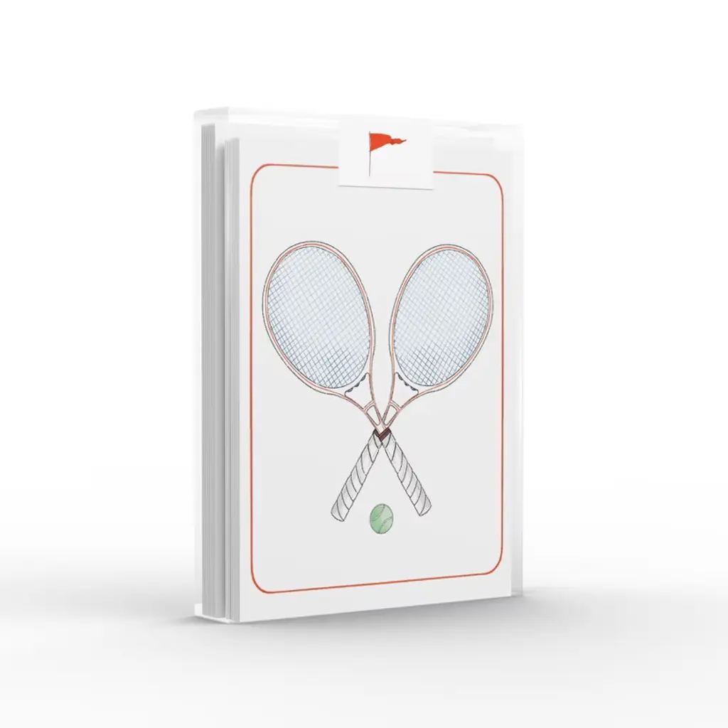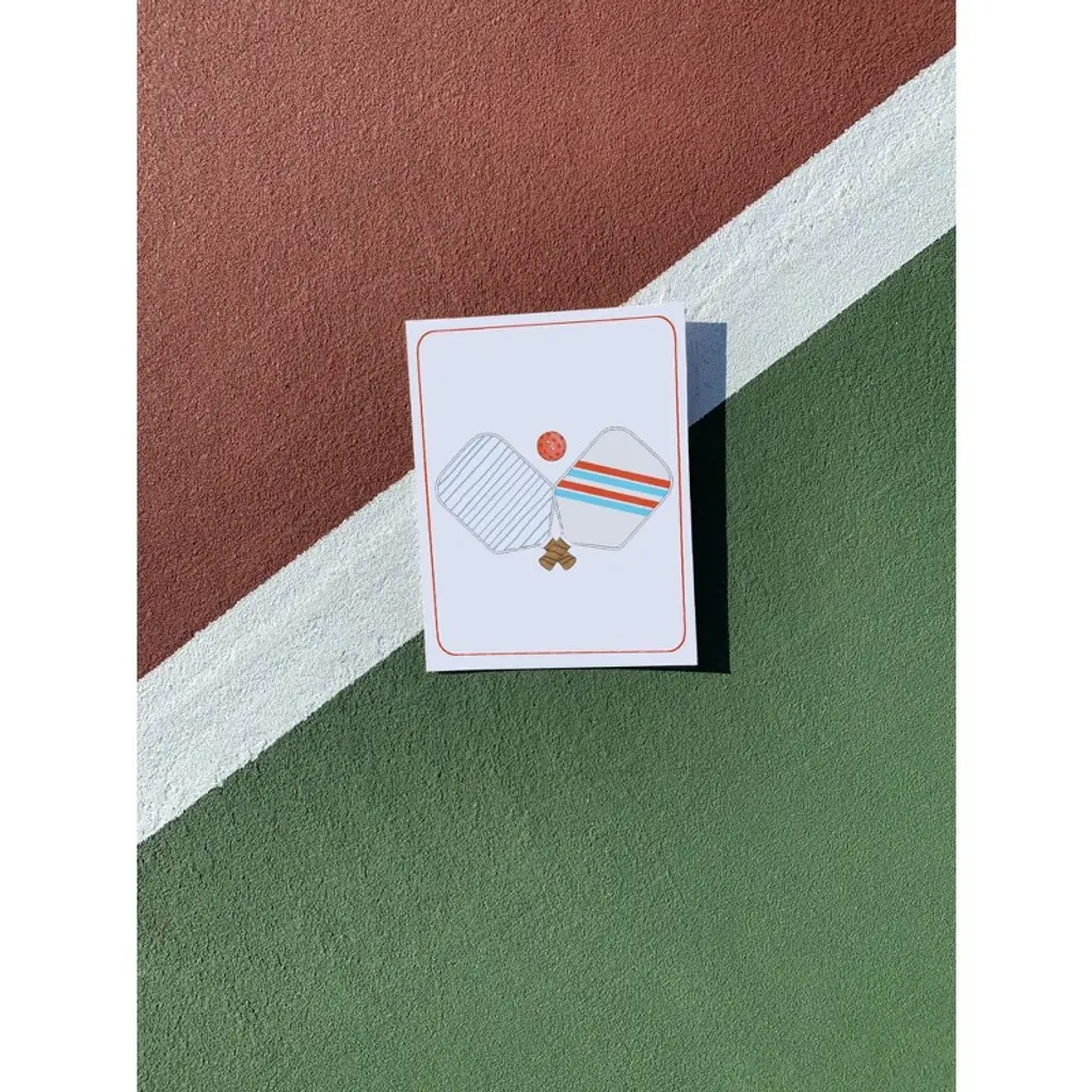 This 8-pack of greeting cards is elegantly illustrated by artist Ingrid Ramus, founder and owner of the Ramus & Co brand. Artwork features pickleball paddles and a ball.. All greeting cards are made in the USA on heavyweight uncoated and locally-sourced and manufactured card stock. Each card is accompanied by a hand-embossed envelope made with heavyweight 95lb paper and a peel-and-stick flap - no licking envelopes here! All Ramus & Co. greeting cards are printed on FSC and SFI certified paper sourced from a regional mill that harnesses 66% of its energy from on-site sustainable sources, such as emission-free hydroelectricity and biomass co-generation from wood waste. All 8 greeting cards come packaged as a boxed set. Husband-and-wife team Calvin and Ingrid Ramus founded Ramus & Company in 2019, in New England, USA. Ingrid, the creative designer behind the brand, originates from Mexico, where she cultivated her skills in fashion and textile design. Drawing from her unique and inquisitive perspective on preppy style, Ingrid prolifically designs whimsical yet classic stationery and lifestyle items.