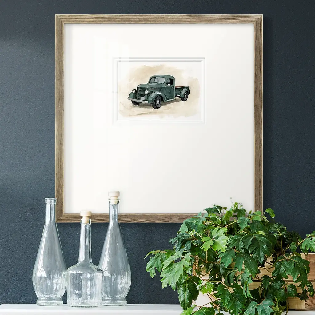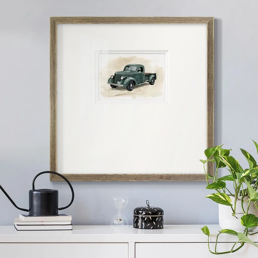 Pickup IIPremium Framed Print A framed cold pressed paper print featuring superior double matting and quality frame. 2 SIZES AVAILABLE 16''X16''' - Overall Size 20''X20''' - Overall Size Each piece is made to order. Each piece comes with hanging hardware. Made in the USA Ready to Hang Giclee Paper Print Plexiglass Beveled Matt Board Double Matte Board