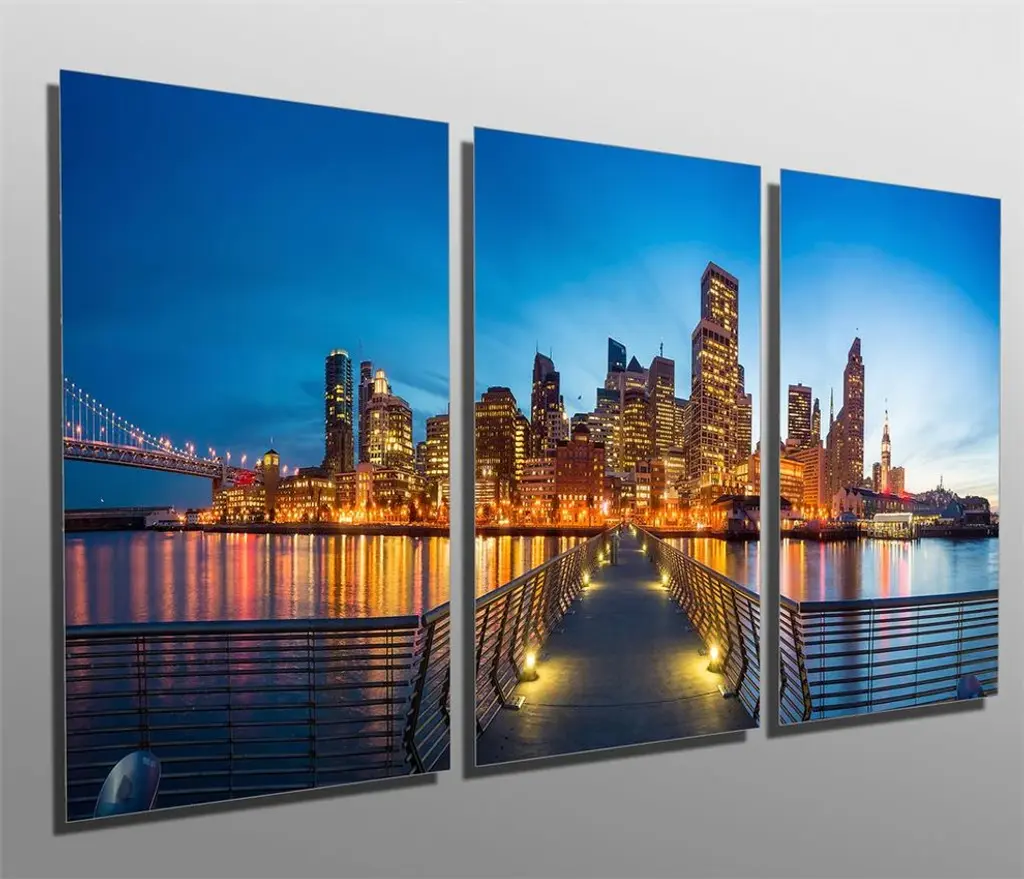 72"œ x 36"œ total size. Ready To Hang! (3 pieces - 24"œ x 36"œ each). 3 Panel Split (Triptych) Metal Print of Pier 14 view San Francisco. Modern metal wall art for home or office wall decor & interior design. Printed on Luxurious, HD aluminum glossy metal panels. Multi panel art.. HD aluminum panels. Metal print wall art. Includes Shadow Wall Mount on the back.• Aluminum Metal Wall Art• Made in USA• Ready to hang - No assembly required• Shadow mount hardware on the back• 0.045"œ thick HD Aluminum Panels• Scratch resistant, glossy finish• Superb color clarity, luxurious prints• Epson printing process• For indoor or moisture rich environment use• Easy to clean. Gently wipe with microfiber cloth.