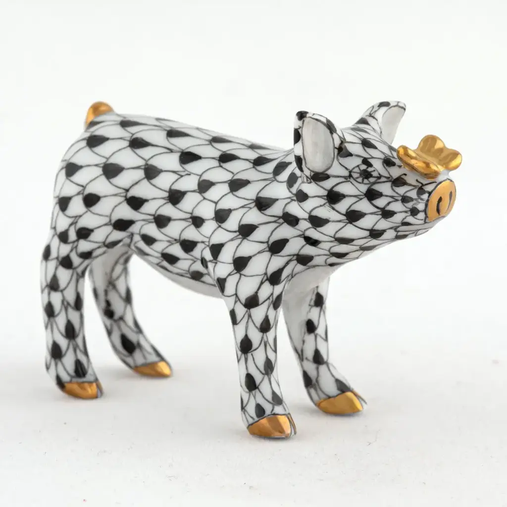 Endearing animals meek and bold, large and small, demure and majestic eagerly await the chance to melt your heart and warm your home. Each is brought to life by the skilled hands of artisans crafting and painting these charming porcelain creatures. The famous fishnet decor adorning many of the animals took form in 1858 when a Herend painter became inspired by a fishscale design he saw on a Chinese porcelain plate and painted a similar pattern onto a rooster figurine to imitate feathers. The rest is history, with the fishnet design now a Herend signature prized worldwide. Now the biggest porcelain manufactory in Europe, Herend was founded in 1826 to produce earthenware in the small Hungarian village for which it was named. At the time, Hungary was flooded with low-cost pottery, but in 1839, Mor Fischer became the Manufactory’s new owner and he decided to focus on producing dinnerware replacement pieces for Europe’s royal families to complement their valuable porcelain patterns from Germany and the Far East. As his client base grew, Fischer commissioned his artists to begin designing dinnerware patterns of their own. Queen Victoria’s 1851 purchase of a large set for Windsor Castle was a milestone, setting the stage for aristocrats throughout Europe to clamor for Herend in their estates. In the 1850s, Herend added meticulously-crafted figurines to its creations. Herend’s trademark fishnet pattern, which is widely recognized and prized as Herend’s signature design, started in 1858 when an artist who was intrigued with a Chinese plate’s fish scale design painted it onto a rooster figurine to imitate feathers.