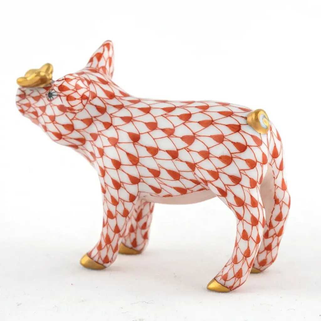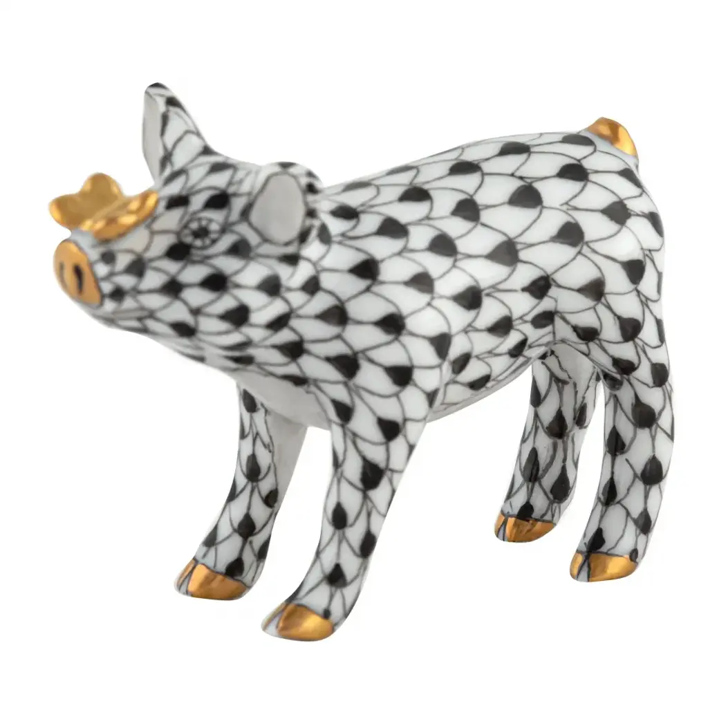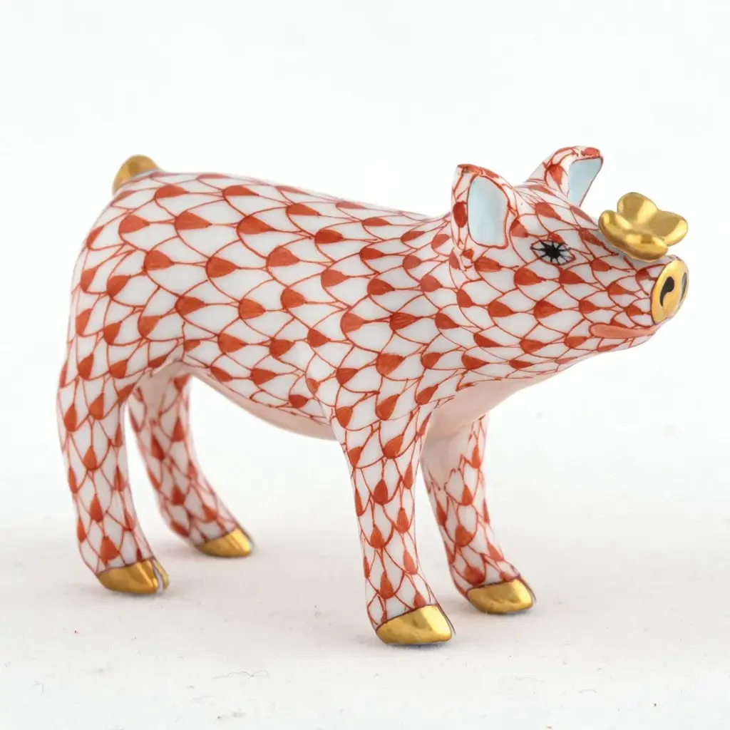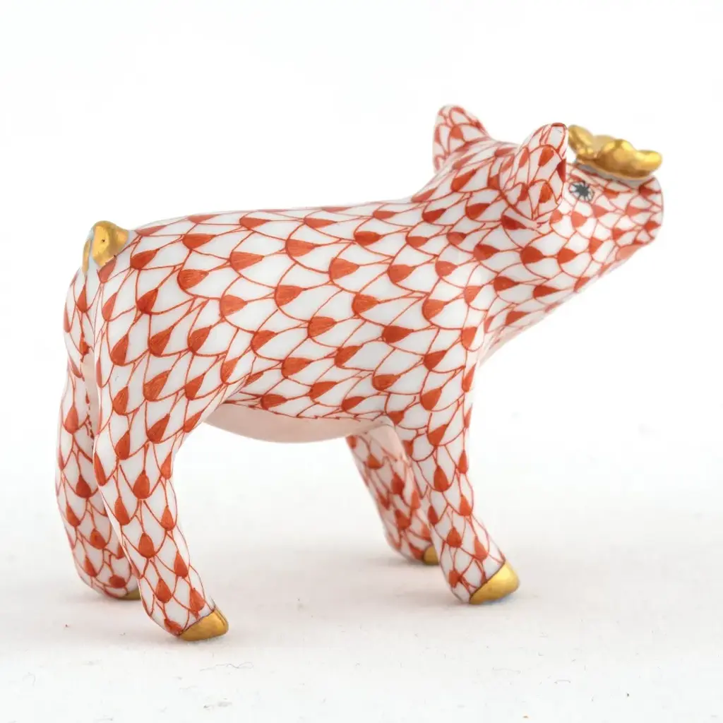 Endearing animals meek and bold, large and small, demure and majestic eagerly await the chance to melt your heart and warm your home. Each is brought to life by the skilled hands of artisans crafting and painting these charming porcelain creatures. The famous fishnet decor adorning many of the animals took form in 1858 when a Herend painter became inspired by a fishscale design he saw on a Chinese porcelain plate and painted a similar pattern onto a rooster figurine to imitate feathers. The rest is history, with the fishnet design now a Herend signature prized worldwide. Now the biggest porcelain manufactory in Europe, Herend was founded in 1826 to produce earthenware in the small Hungarian village for which it was named. At the time, Hungary was flooded with low-cost pottery, but in 1839, Mor Fischer became the Manufactory’s new owner and he decided to focus on producing dinnerware replacement pieces for Europe’s royal families to complement their valuable porcelain patterns from Germany and the Far East. As his client base grew, Fischer commissioned his artists to begin designing dinnerware patterns of their own. Queen Victoria’s 1851 purchase of a large set for Windsor Castle was a milestone, setting the stage for aristocrats throughout Europe to clamor for Herend in their estates. In the 1850s, Herend added meticulously-crafted figurines to its creations. Herend’s trademark fishnet pattern, which is widely recognized and prized as Herend’s signature design, started in 1858 when an artist who was intrigued with a Chinese plate’s fish scale design painted it onto a rooster figurine to imitate feathers.