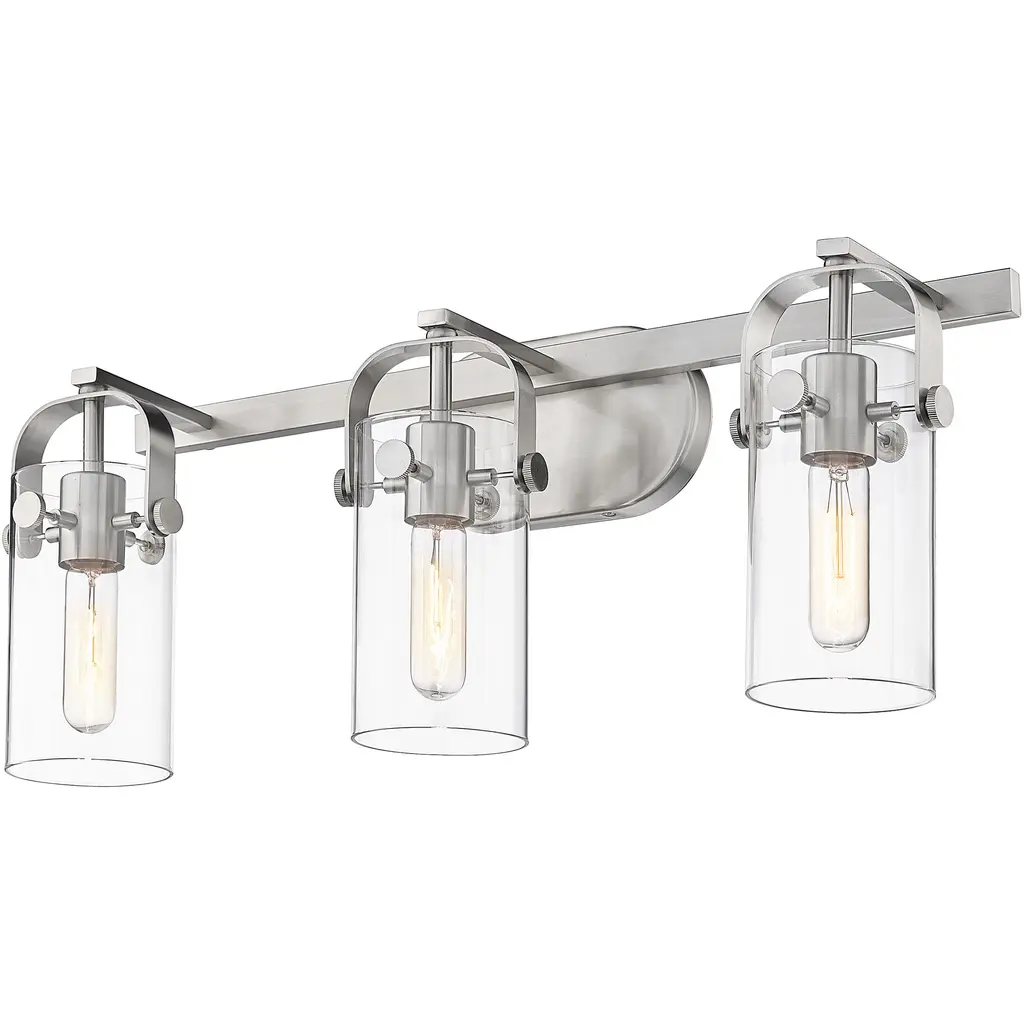 Pilaster Bath Vanity Light, Brushed Satin Nickel, Clear