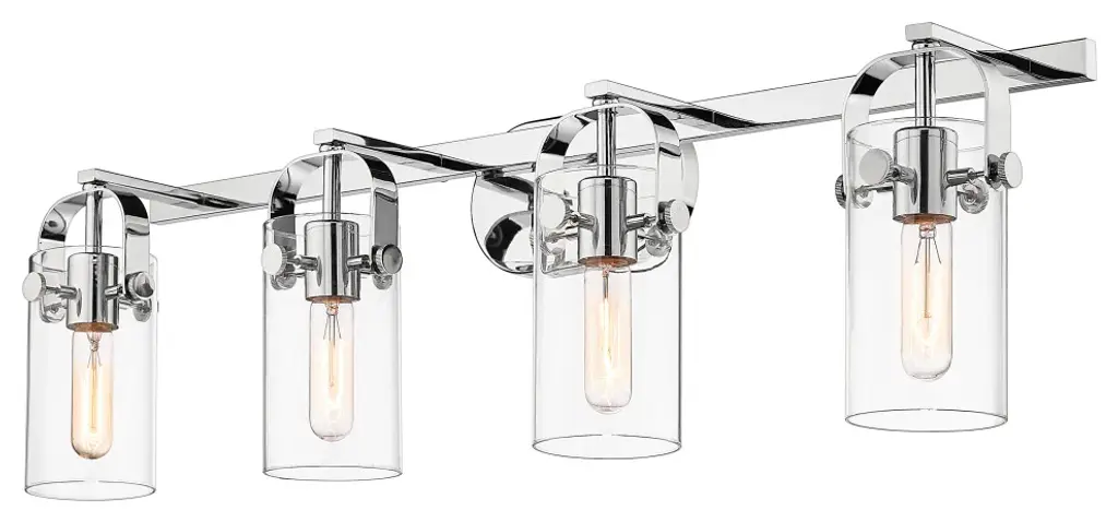 Pilaster Bath Vanity Light, Brushed Satin Nickel, Clear