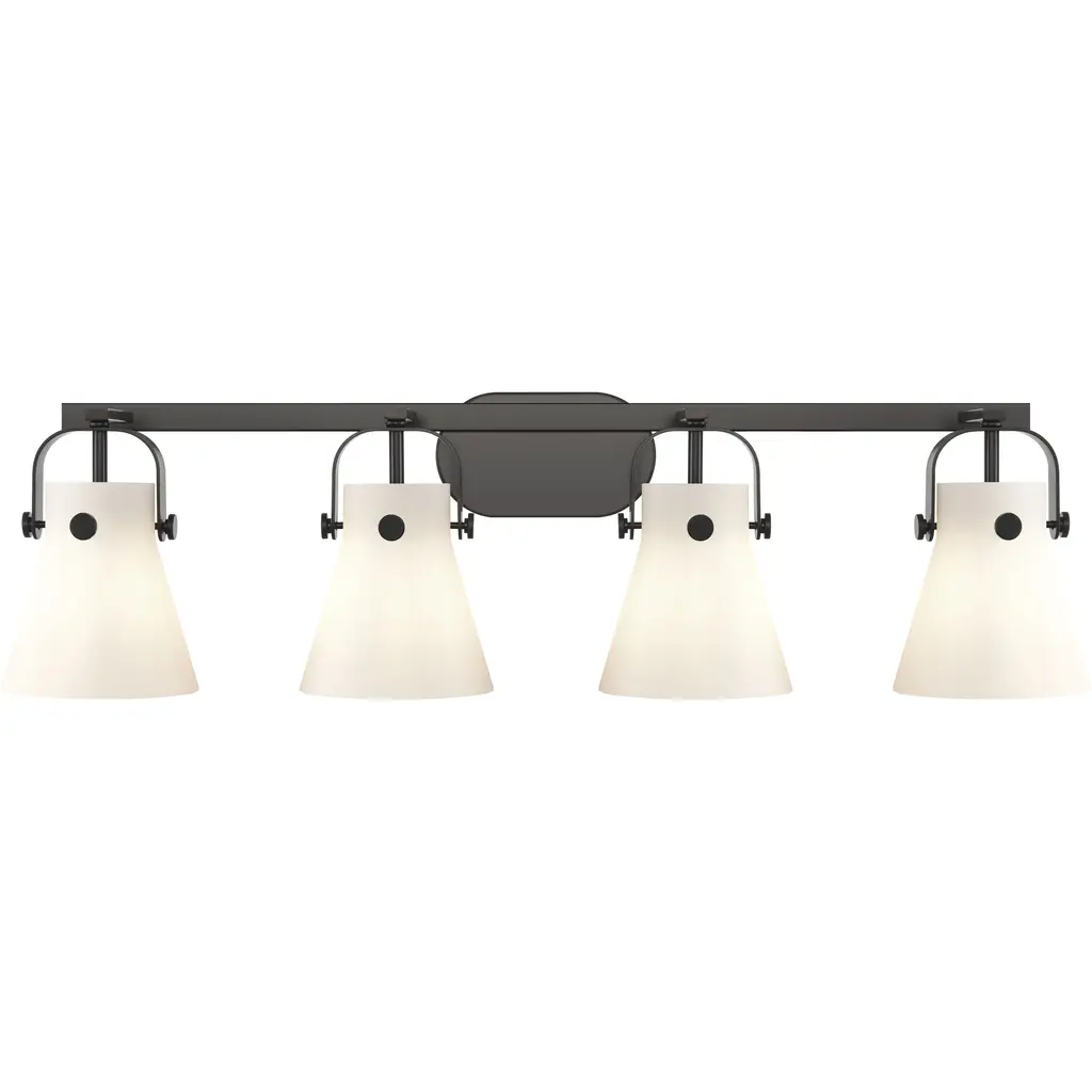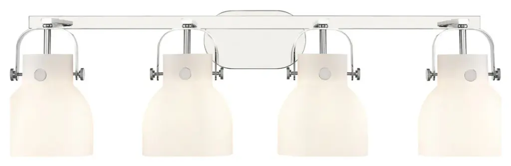 Pilaster Ii Bell 4 Light 36.5 Inch Satin Nickel Bath Vanity Light Wall Light In Matte White Glass